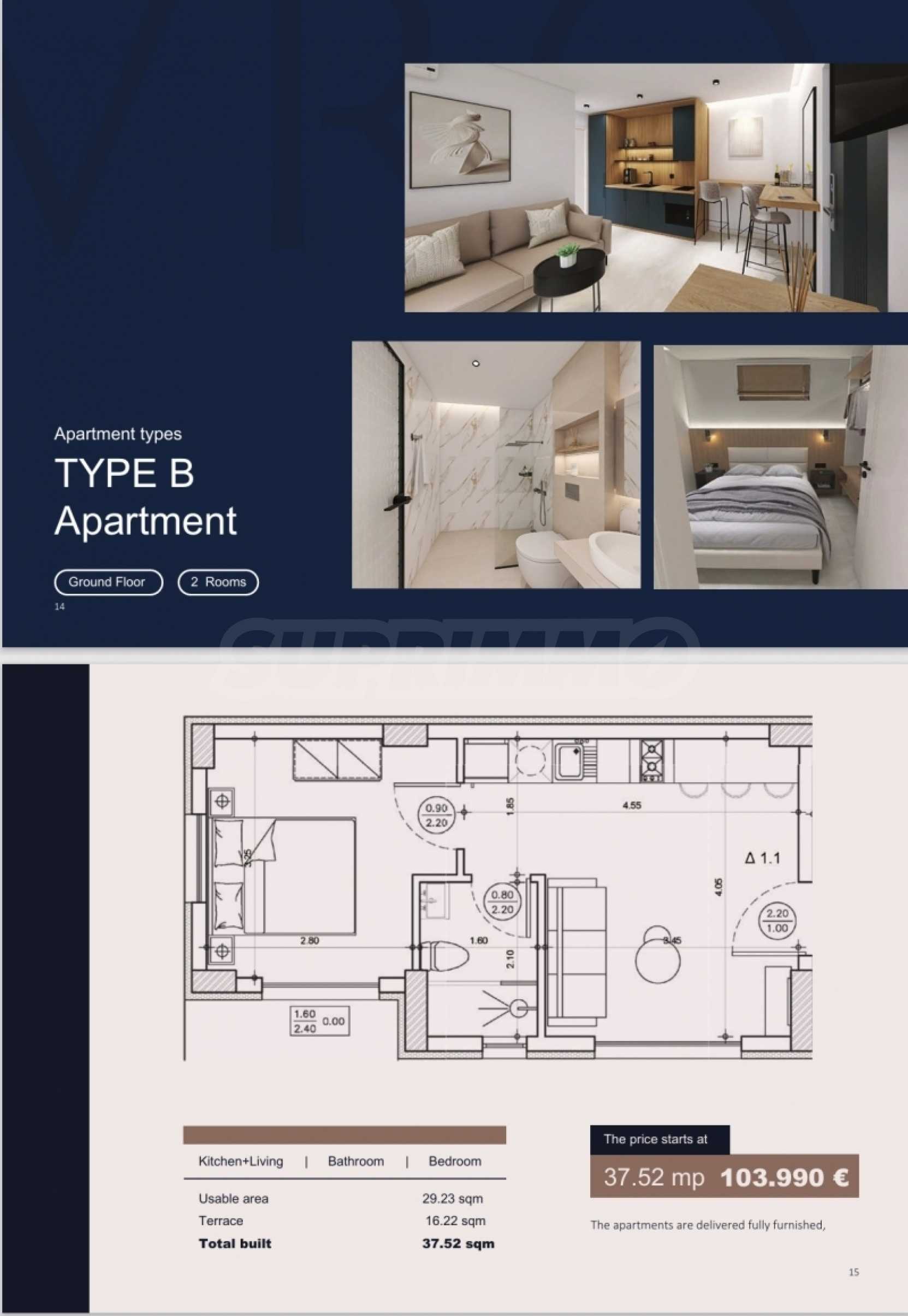 Откройте для себя лучшие впечатления от отпуска или постоянного проживания в этих полностью оборудованных апартаментах на первом этаже, всего в 130 метрах от прекрасного пляжа Скала Принос. Апартаменты имеют площадь 37,52 кв. м. внутреннего пространства с 1 спальней, 1 ванной комнатой, гостиной с кухней и дополнительной террасой площадью 16,22 кв. м., идеально подходящей для моментов отдыха и развлечений на свежем воздухе. Апартаменты будут полностью оборудованы меблировкую и электроприборами (кроме матраса и телевизора). Они расположены в изысканном комплексе из 12 апартаментов, предлагающем идеальные условия проживания с доступом к общему бассейну, который обеспечит вам прохладу и расслабление в течение всего лета. Апартаменты оборудованы всем необходимым для комфортной и современной жизни, а их расположение в нескольких минутах ходьбы от магазинов, ресторанов и моря делает их идеальными для любителей пляжа и спокойствия. Апартаменты будут сданы в начале ИЮНЯ 2025 ГОДА. Для просмотра недвижимости вам необходимо предъявить удостоверение личности.
