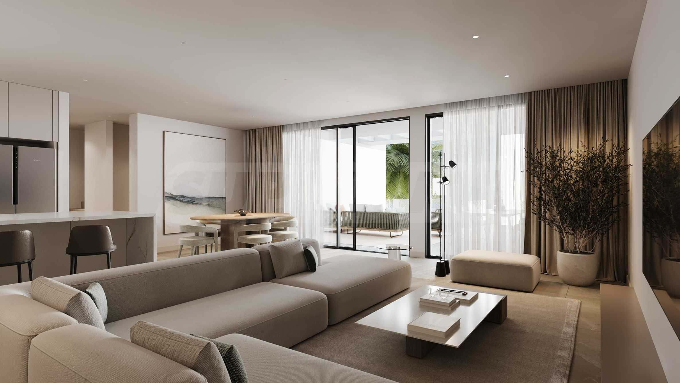 - Квартиры с 2 и 3 спальнями и пентхаусы с собственным солярием;