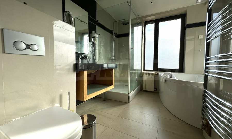 Ванная комната с ванной, душевой кабиной и туалетом;