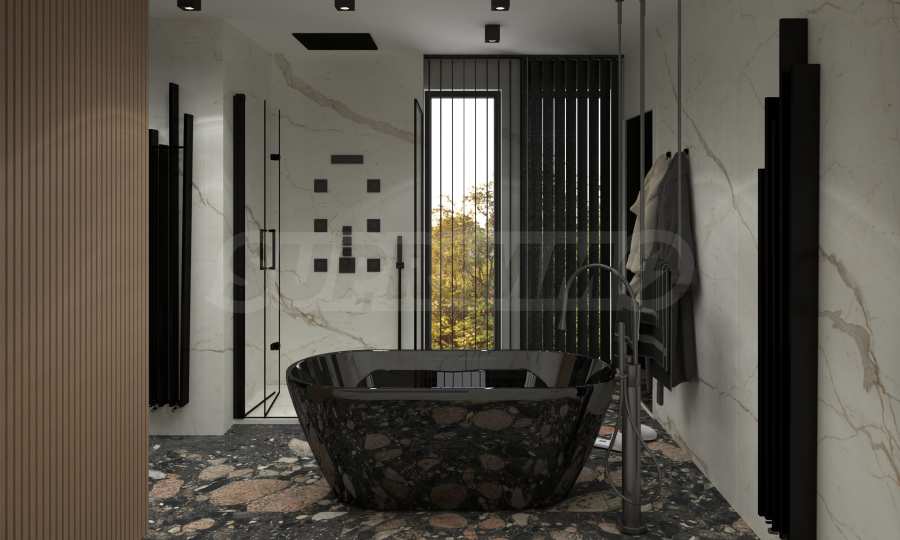Отопление – тёплый пол (во всех комнатах и коридорах) на газе или тепловом насосе. Предусмотрены выводы для установки системы отопления/охлаждения в подвесном потолке. В ванных комнатах, помимо тёплого пола, предусмотрены также инсталляции для лир.
