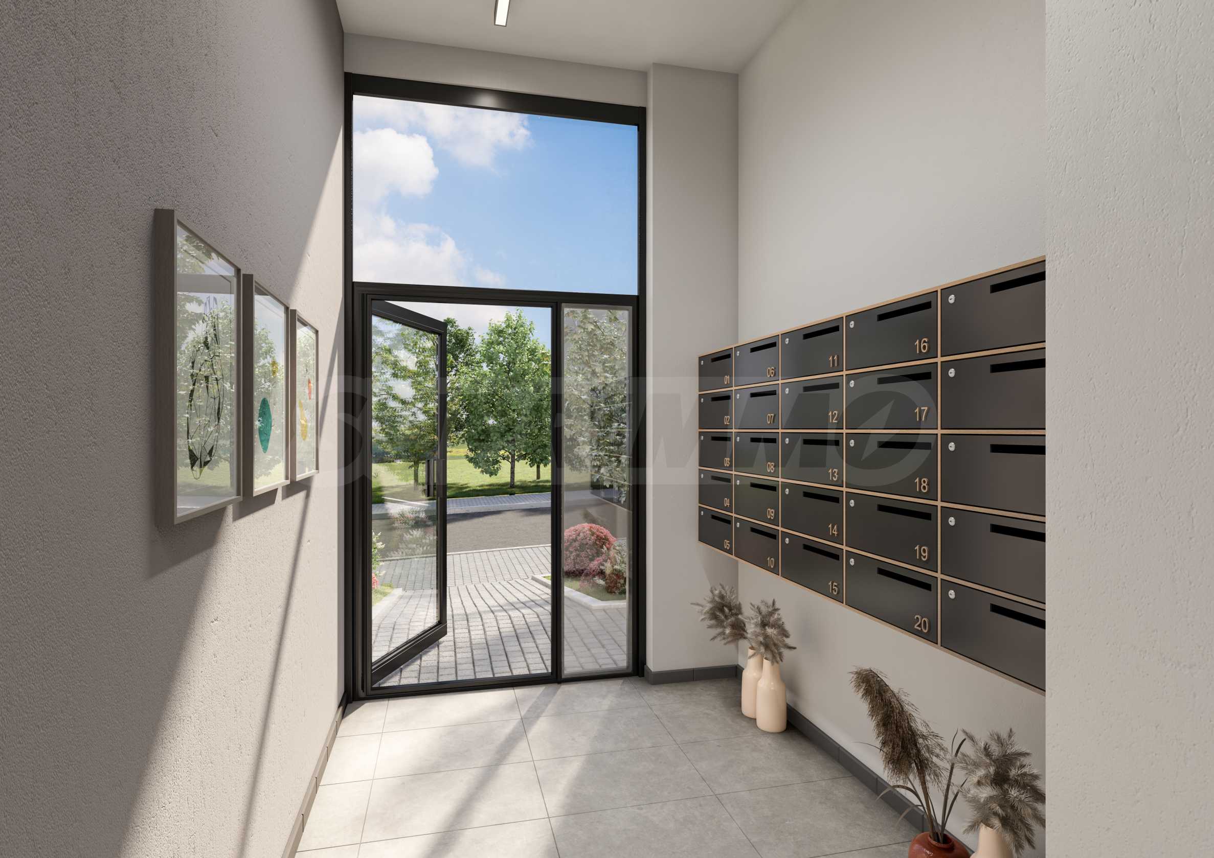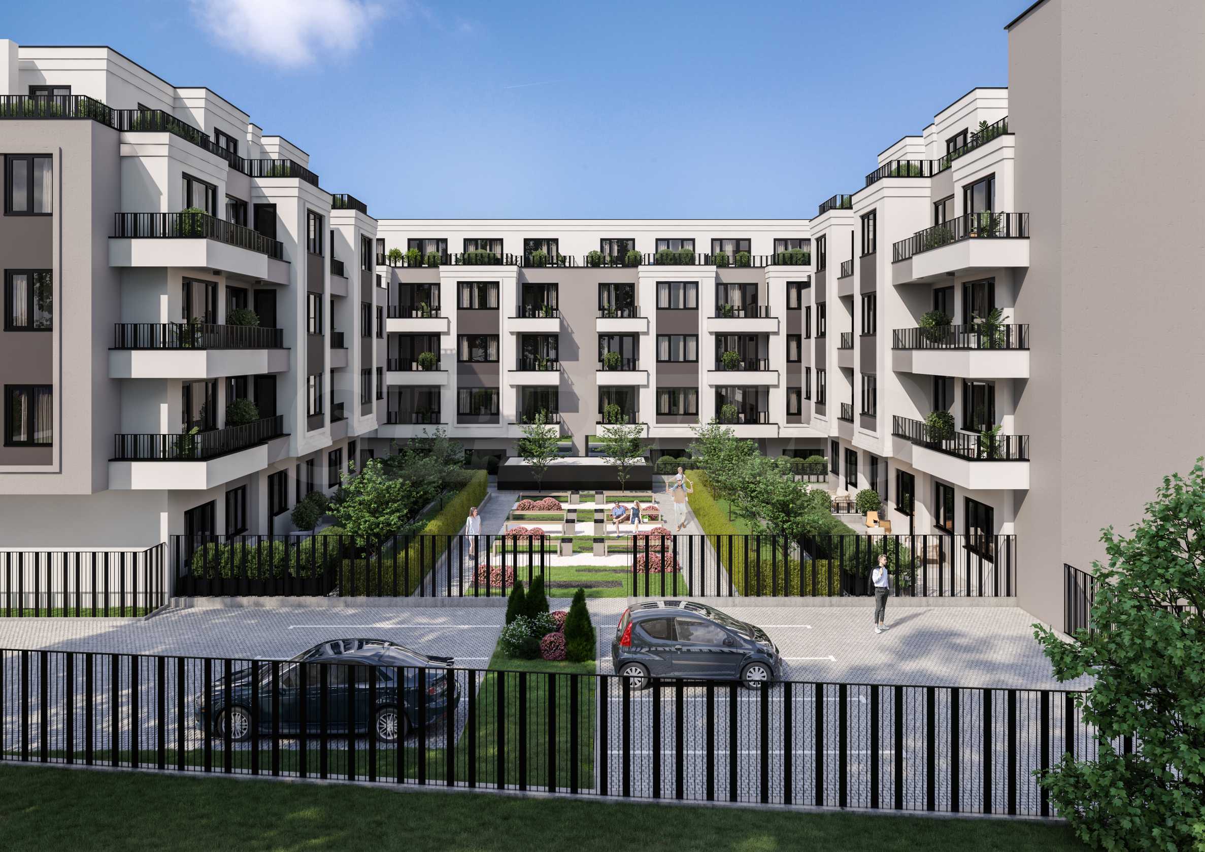 Апартаменты имеют оптимальную планировку и экспозицию, что обеспечивает максимальное количество солнечного света в течение дня и прекрасный вид на гору Витоша. Парковка предусмотрена в подземных гаражах и на придомовой территории, а для дополнительного удобства жильцов в подвале здания предусмотрены кладовые.