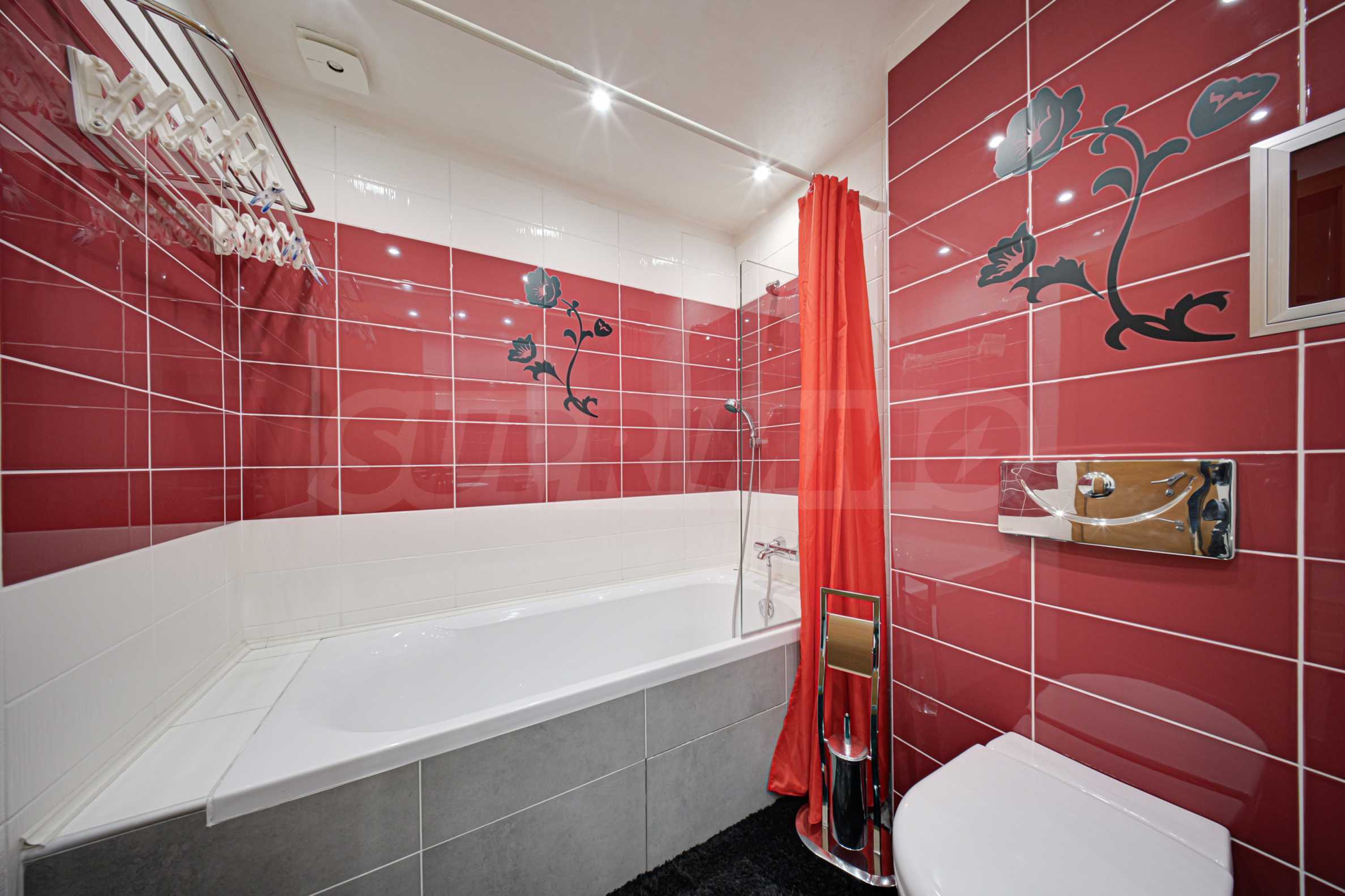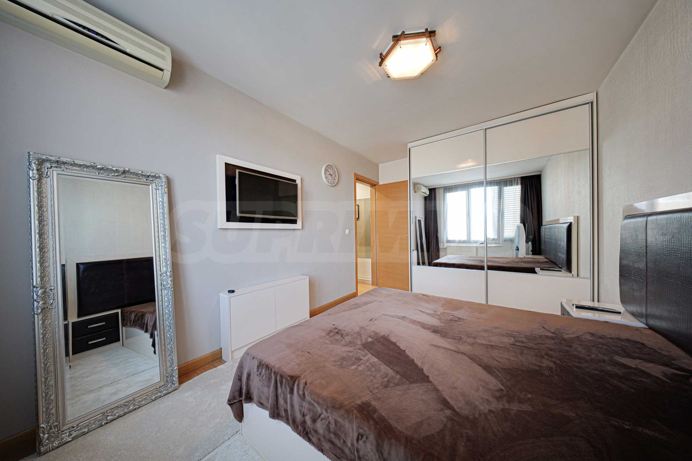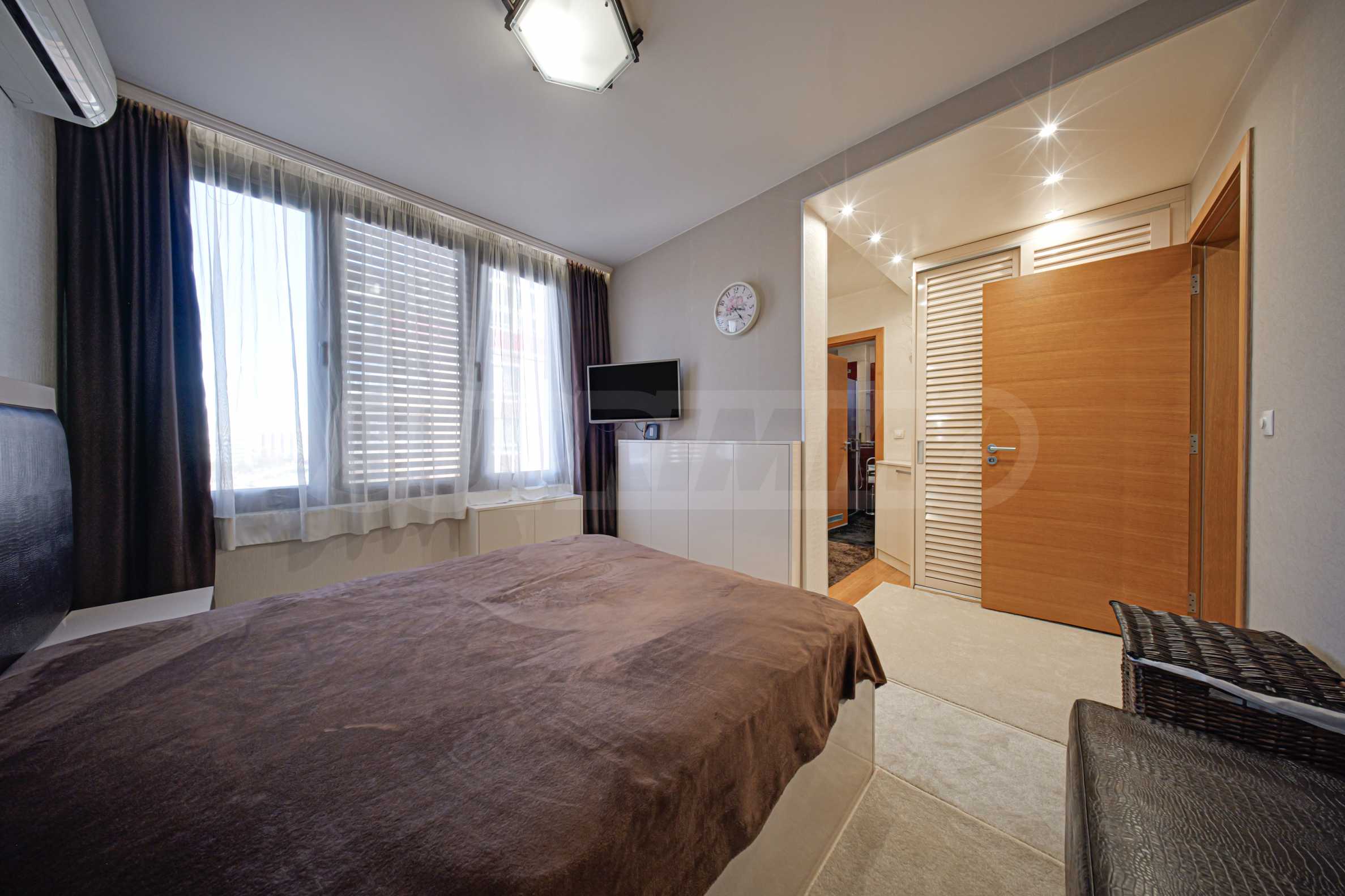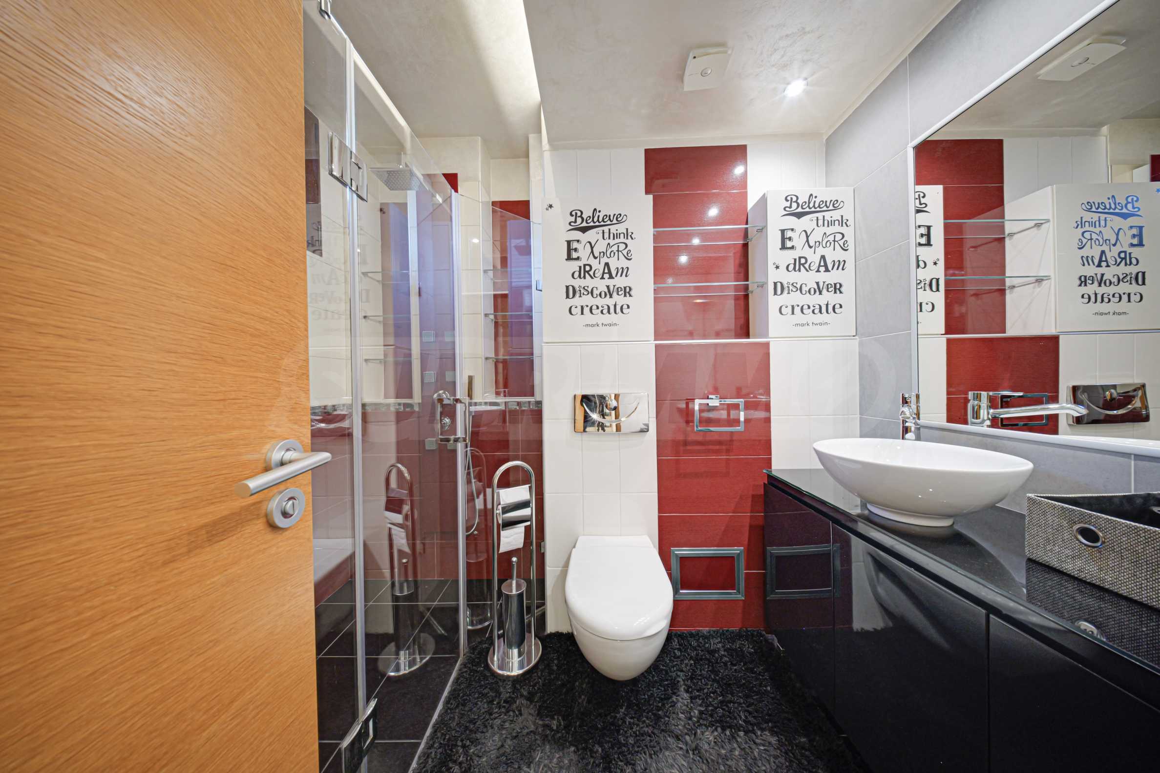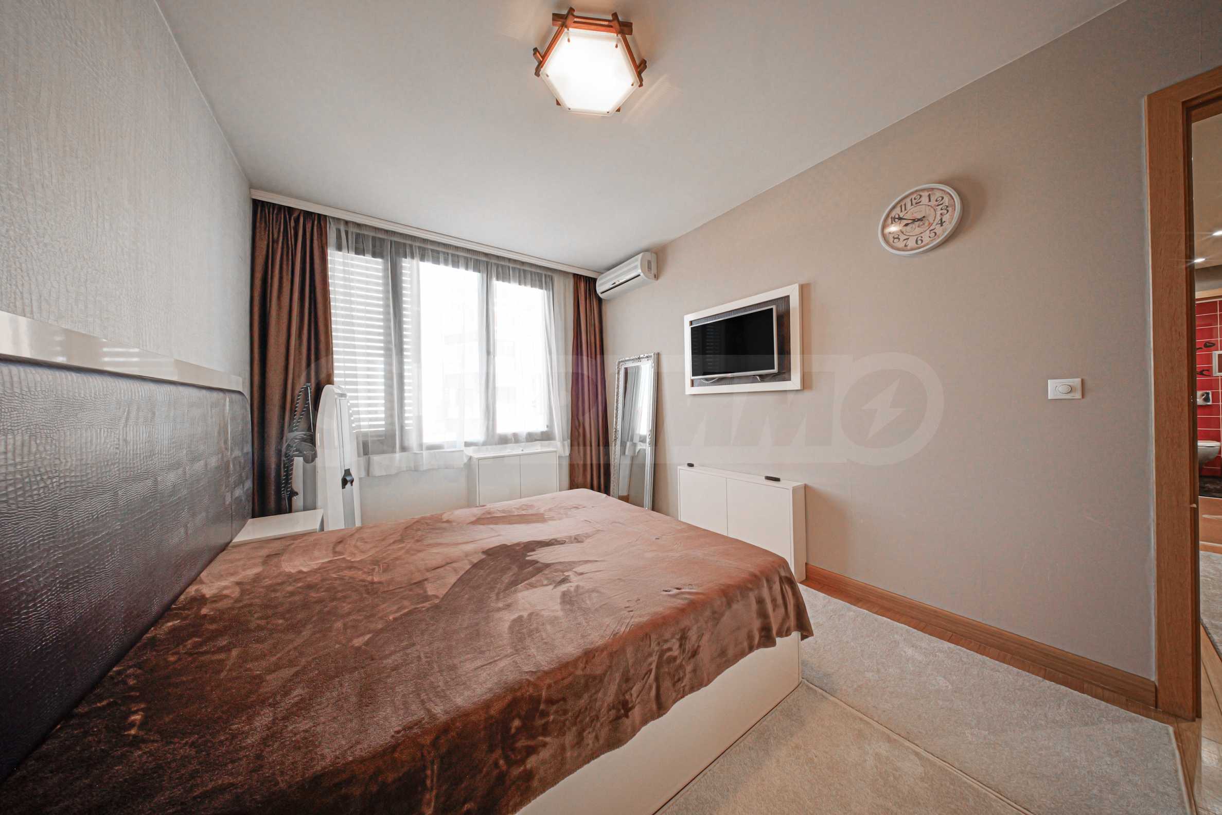 Планировка: отдельный вестибюль в общих помещениях здания, где останавливается лифт, прихожая в квартире, гостиная с кухней, две спальни, две ванные комнаты, терраса с панорамным видом на гору Витоша.