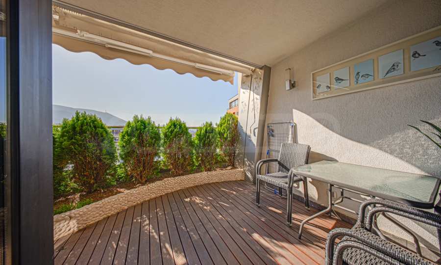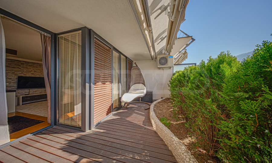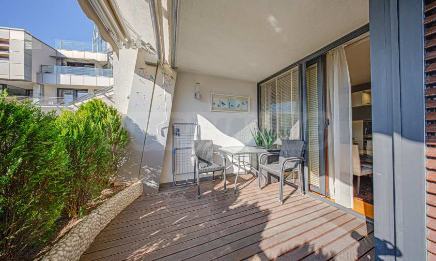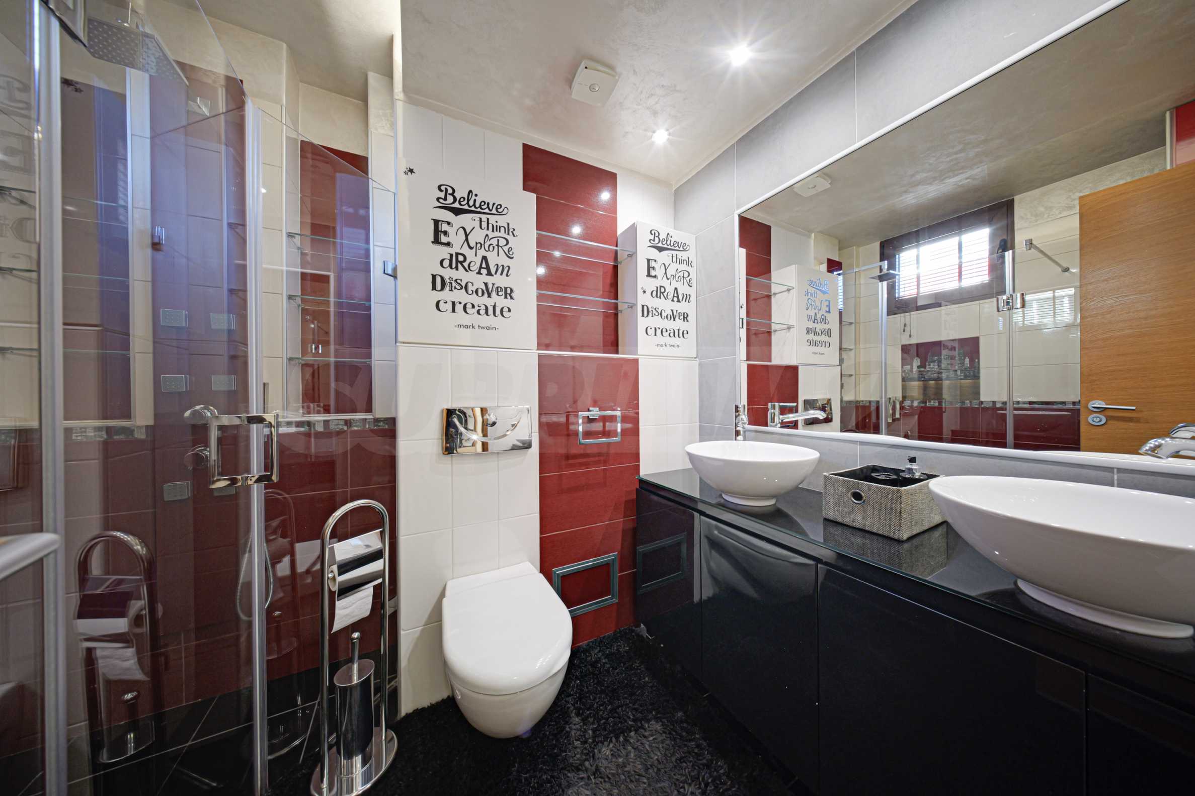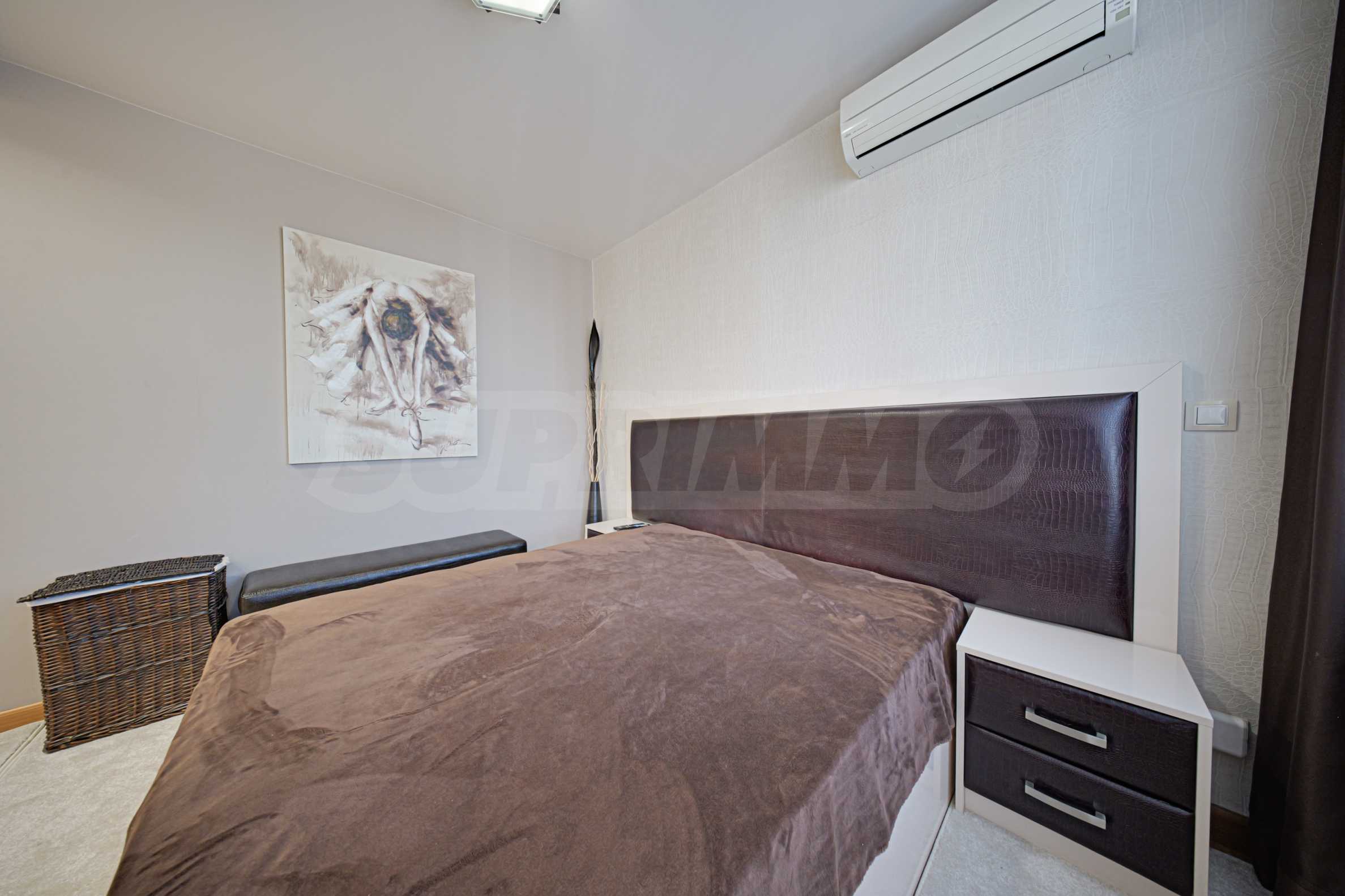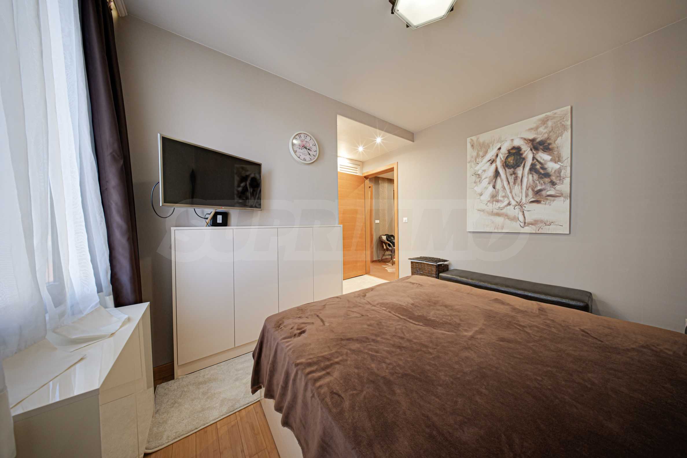 Планировка: отдельный вестибюль в общих помещениях здания, где останавливается лифт, прихожая в квартире, гостиная с кухней, две спальни, две ванные комнаты, терраса с панорамным видом на гору Витоша.