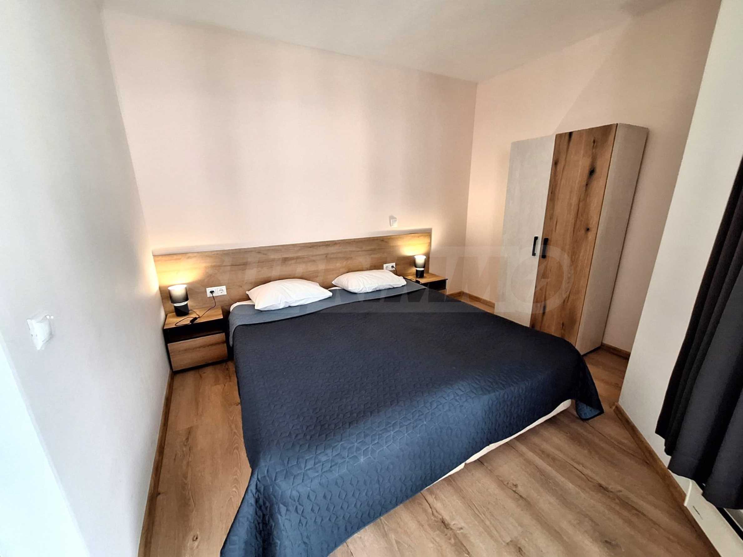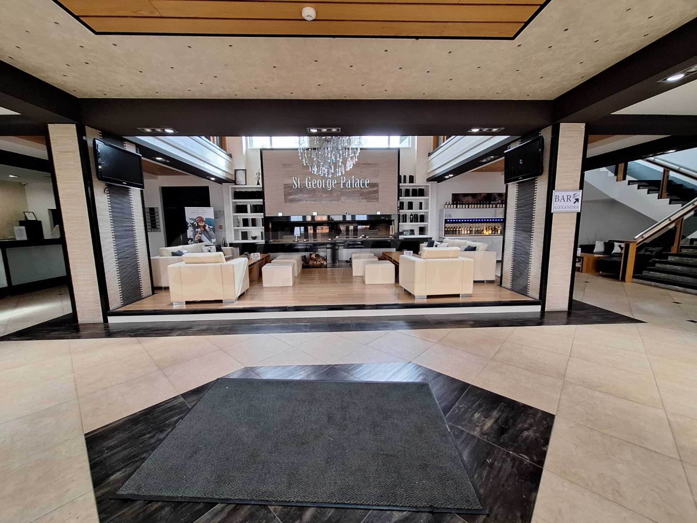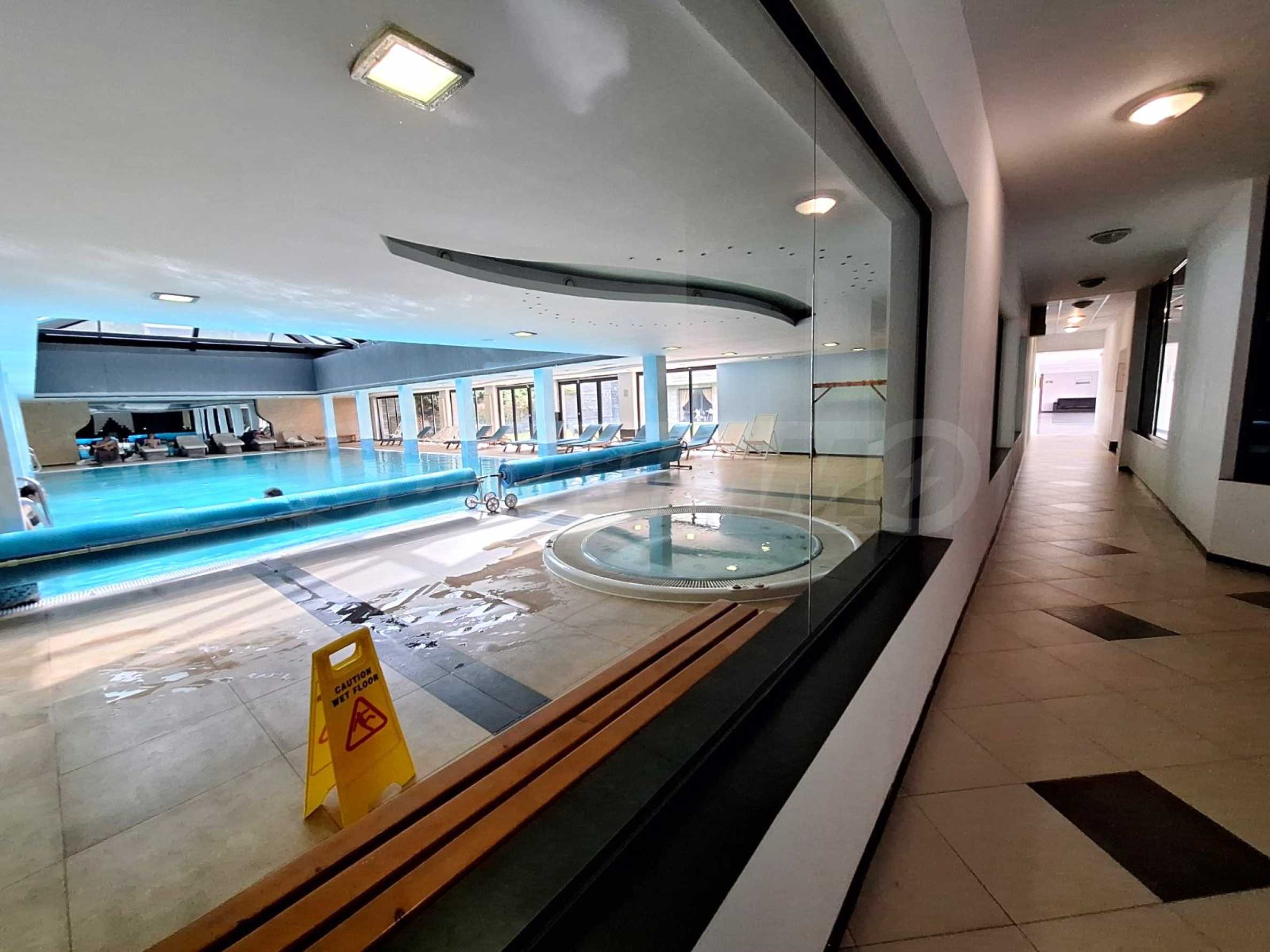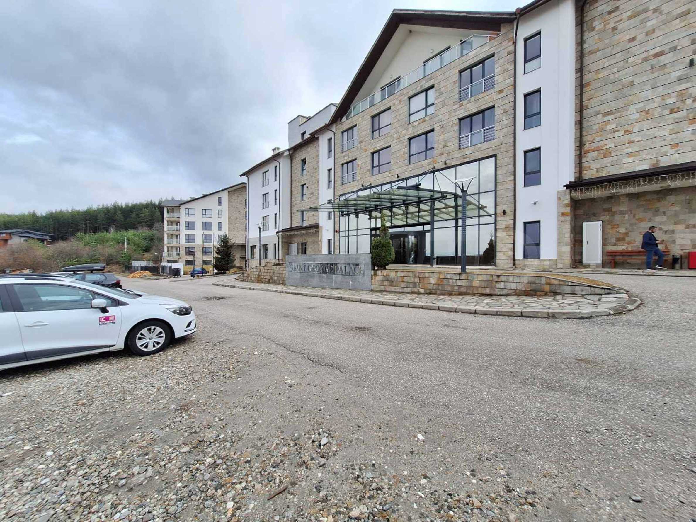 Недвижимость расположена в одном из самых роскошных круглогодичных комплексов в Банско, с обширной СПА-зоной с массажным кабинетом и панорамным видом на Банско, Пирин и Рилу. На территории комплекса есть ресторан традиционной болгарской, итальянской и европейской кухни, а также детская игровая площадка. В апарт-отеле есть 2 бара: спорт-бар с бильярдом и настольным футболом и панорамный лобби-бар на 50 мест с видом на горы. Гости могут расслабиться в крытом бассейне и гидромассажной ванне или воспользоваться оборудованным фитнес-залом и конференц-залом (на 100-120 мест), а также следующими услугами - прачечная, глажка, химчистка, сейфы на ресепшене, прокат автомобилей, экскурсии и трансферы.