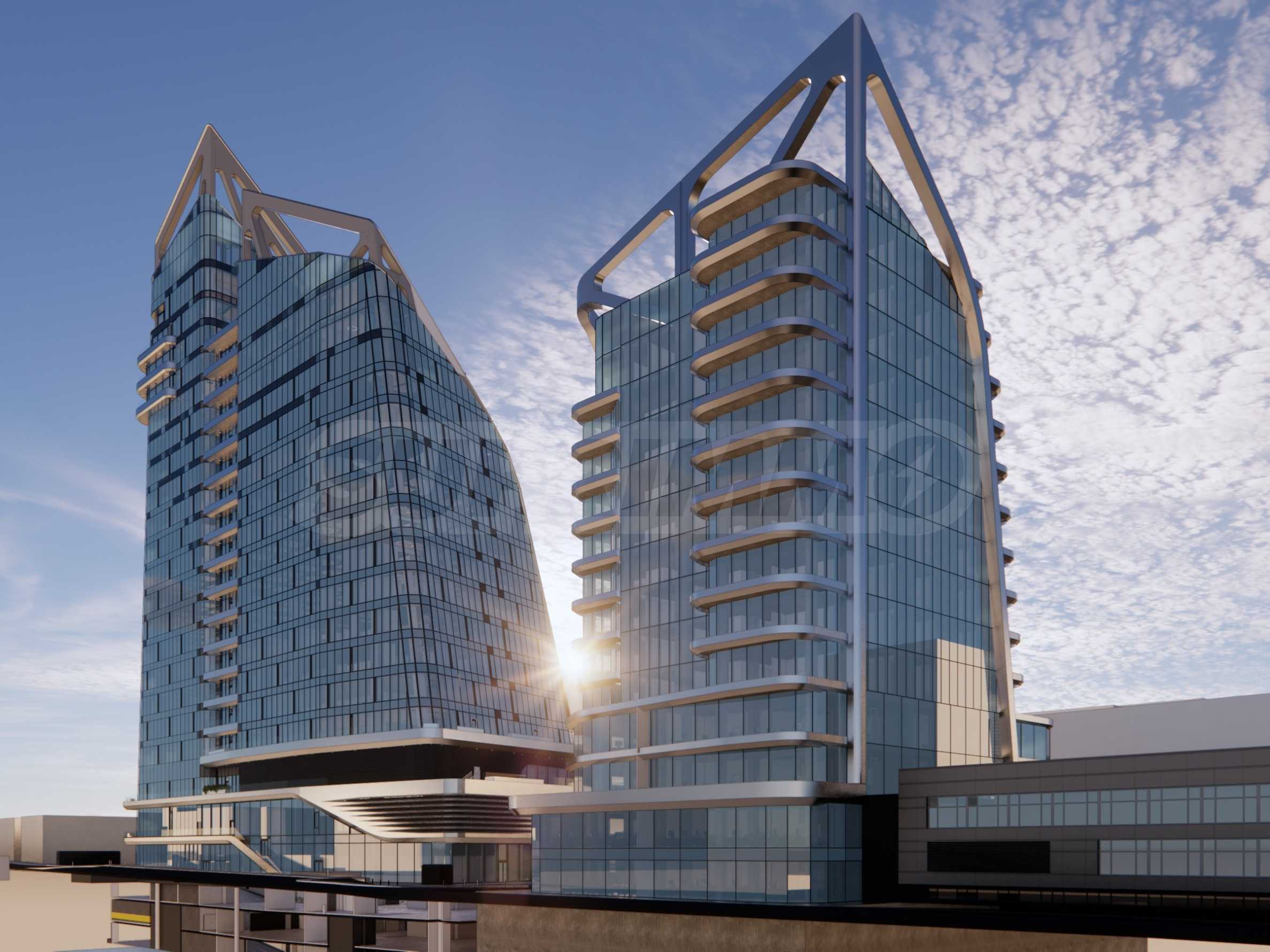 Здание 2 объединяет роскошные жилые дома и офисные помещения премиум-класса, а по соседству, в впечатляющем здании 1, завершенном в 2021 году, размещаются рестораны, торговые точки, оздоровительный и спортивный центр, сады на крыше, конференц-центр и медицинские учреждения. Два здания будут соединены теплым переходом для максимального комфорта и удобства.