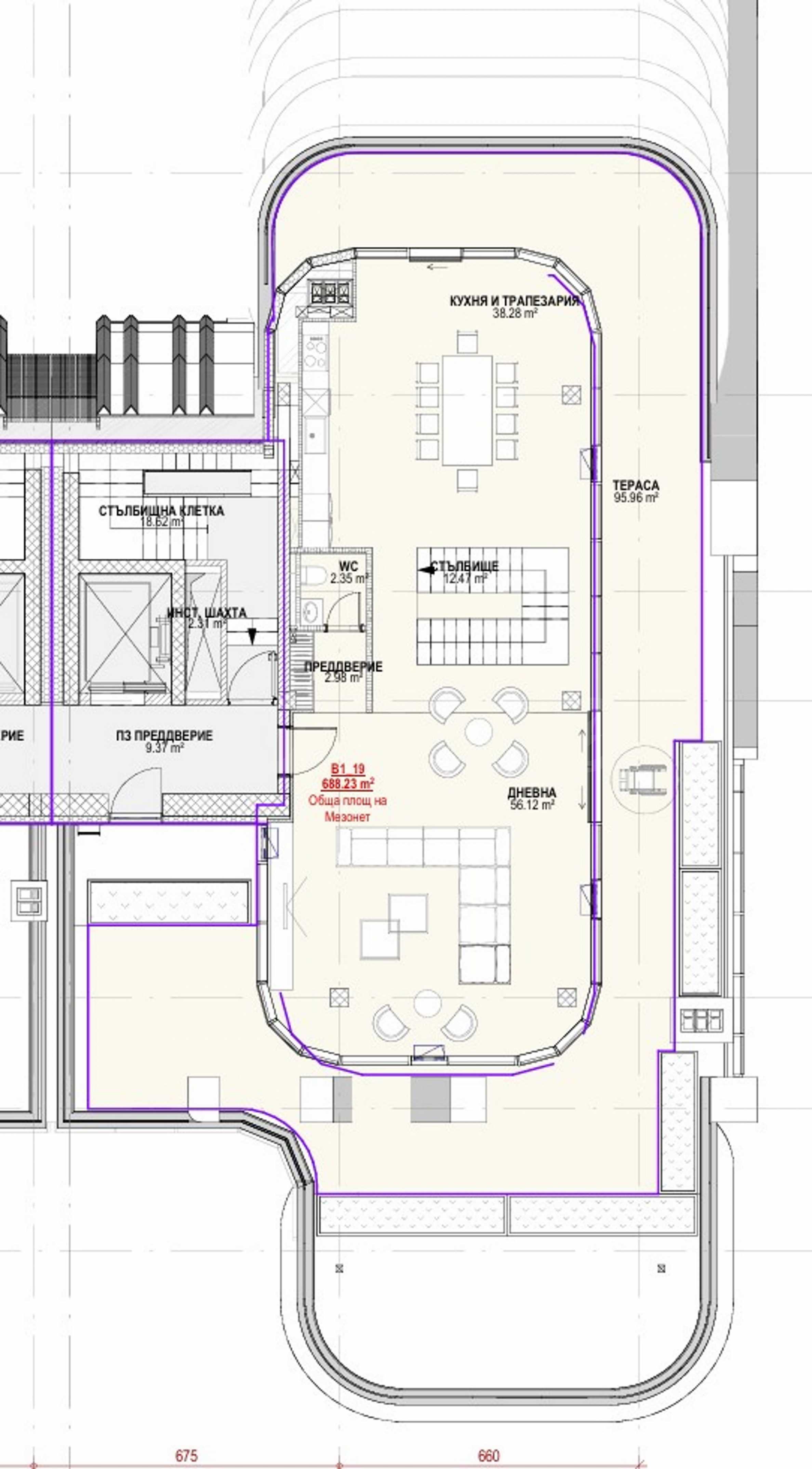 Представляем вашему вниманию элитную недвижимость в столице — впечатляющую квартиру с пятью спальнями и панорамными террасами с видом на населенный пункт и гору Витоша. Недвижимость расположена на 14 и 15 этажах в роскошном новом здании — 2-й очереди инновационного проекта на бул. «Доктор Г.М. Димитров», всего в 300 метрах от станции метро.