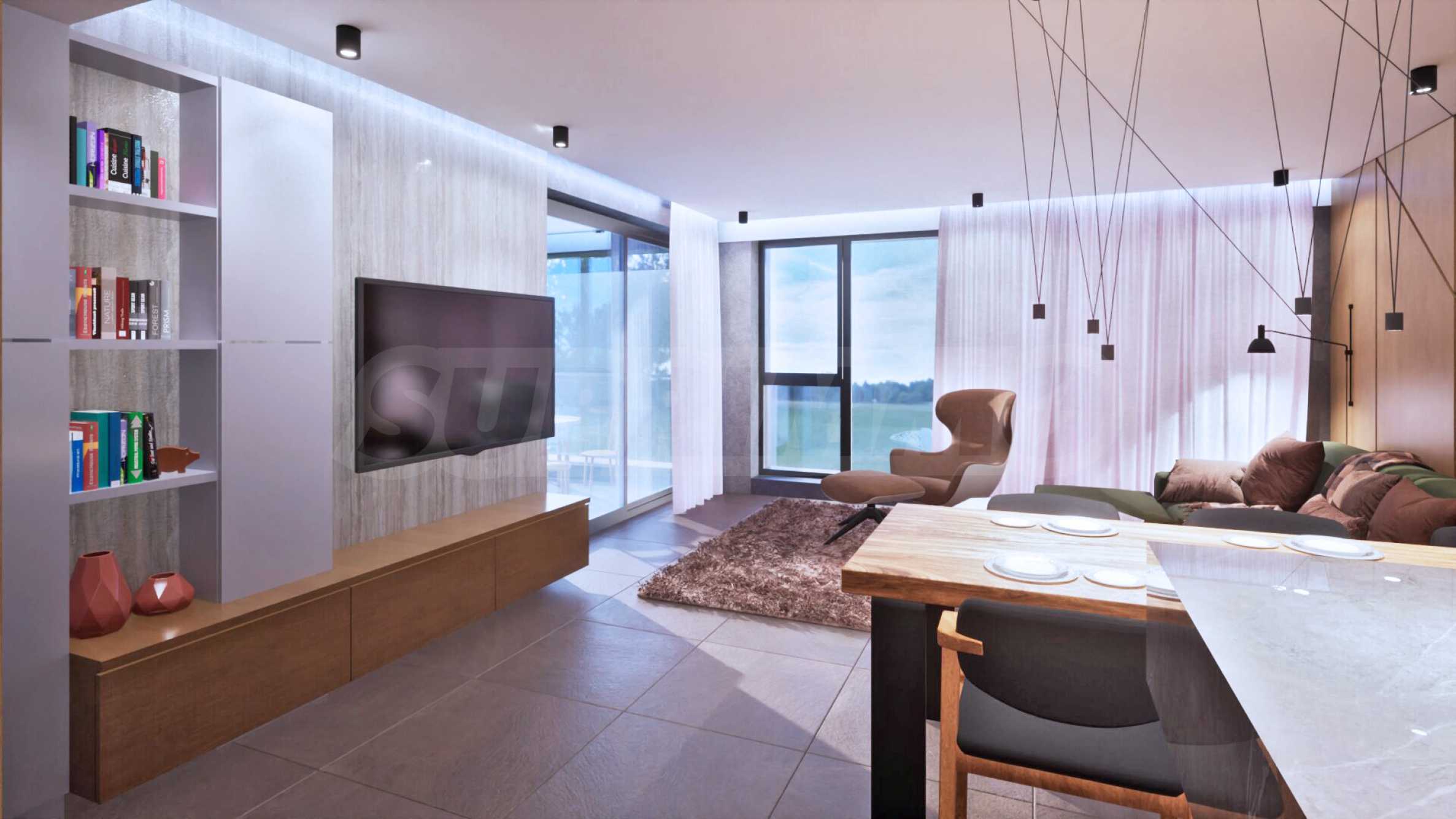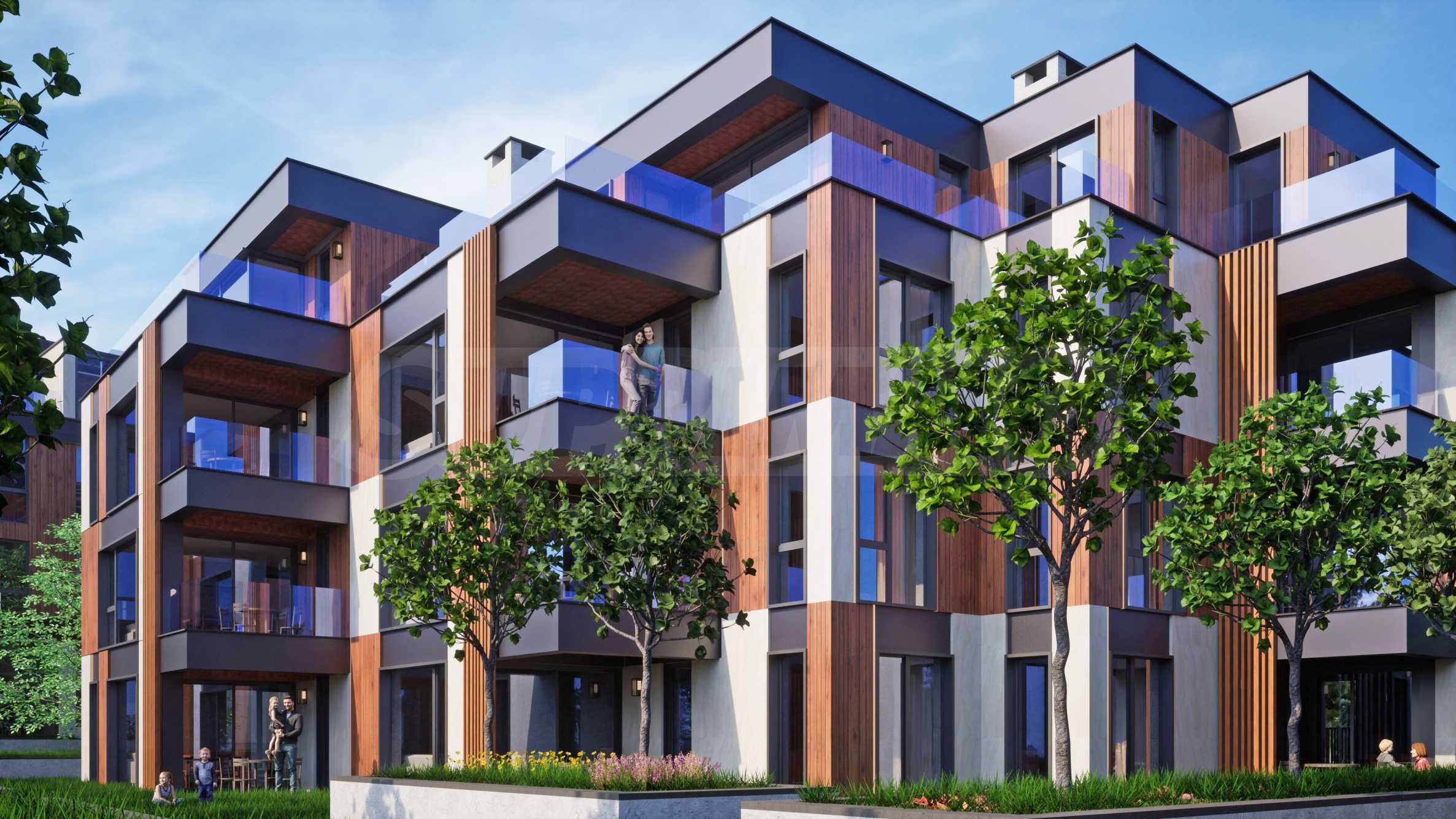 Комплекс расположен в тихом и зеленом месте, недалеко от озера Панчарево, что предлагает прекрасные возможности для отдыха, занятий спортом и прогулок на природе.