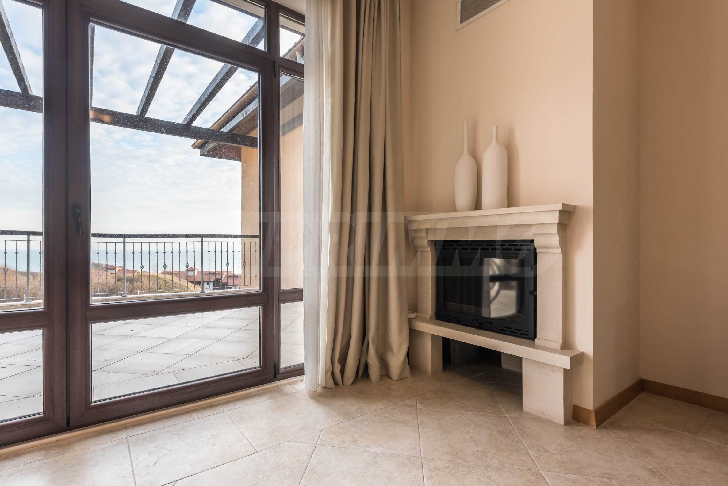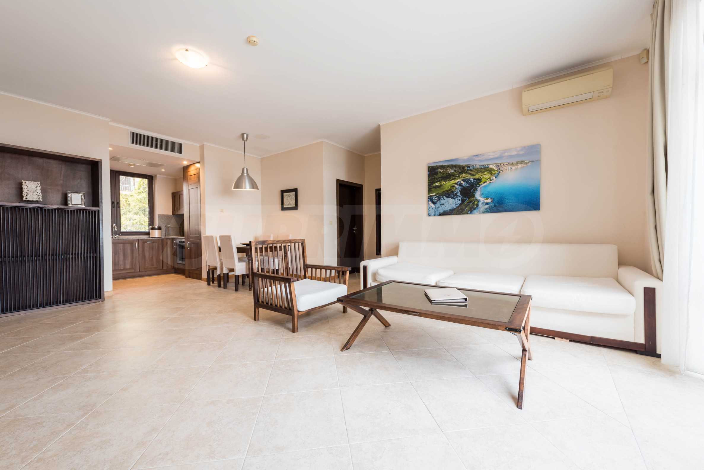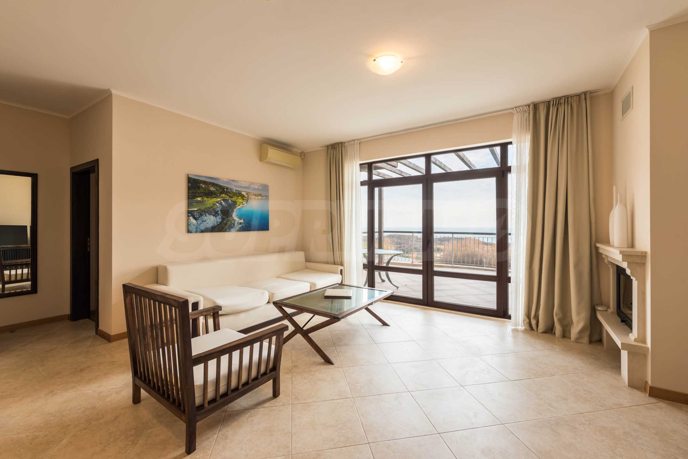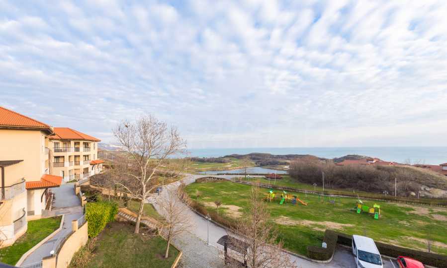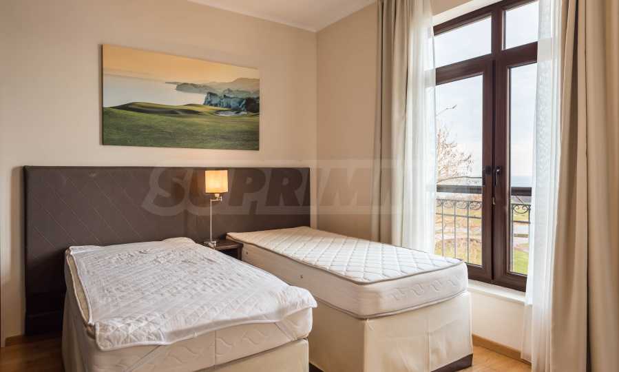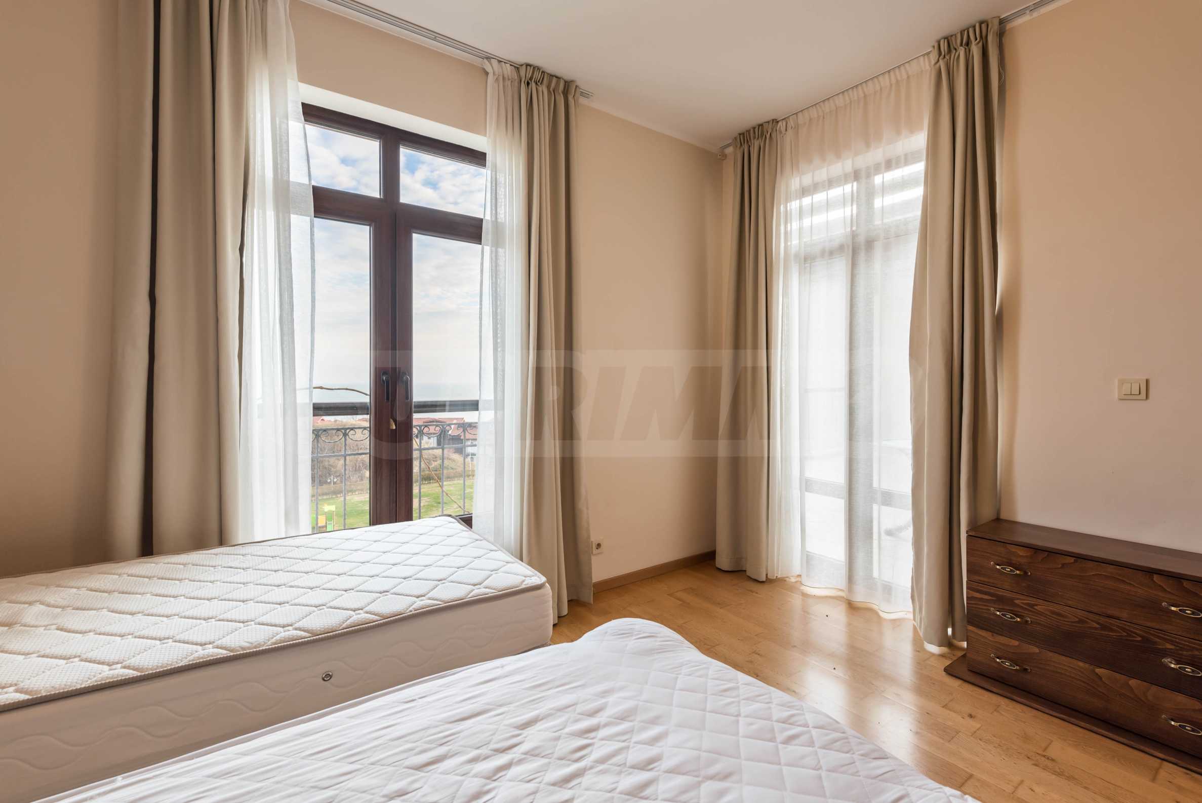 Представляем стильную трехкомнатную квартиру с великолепным видом на море в престижном гольф-комплексе недалеко от Каварны и Балчика.