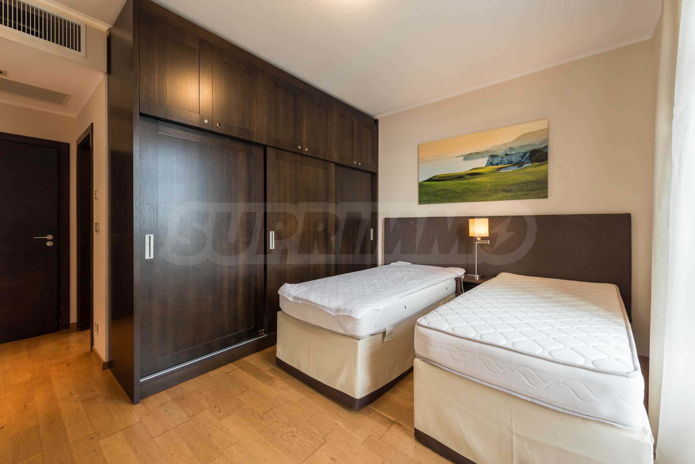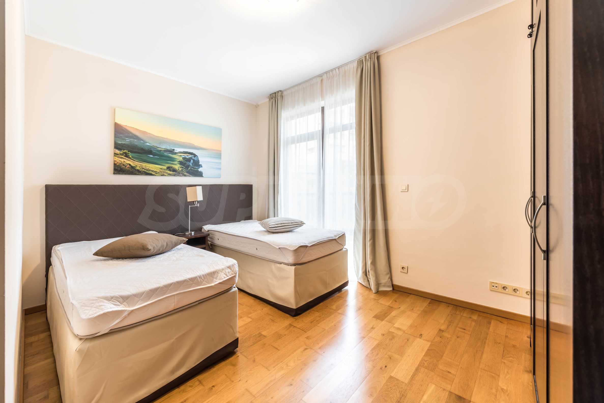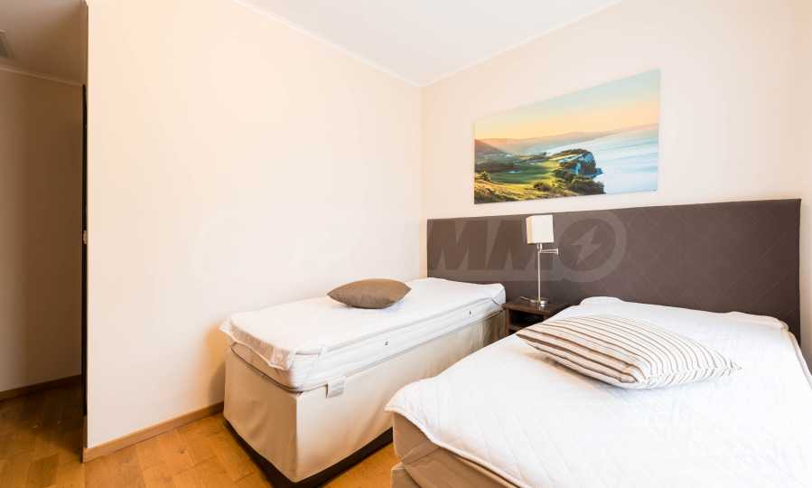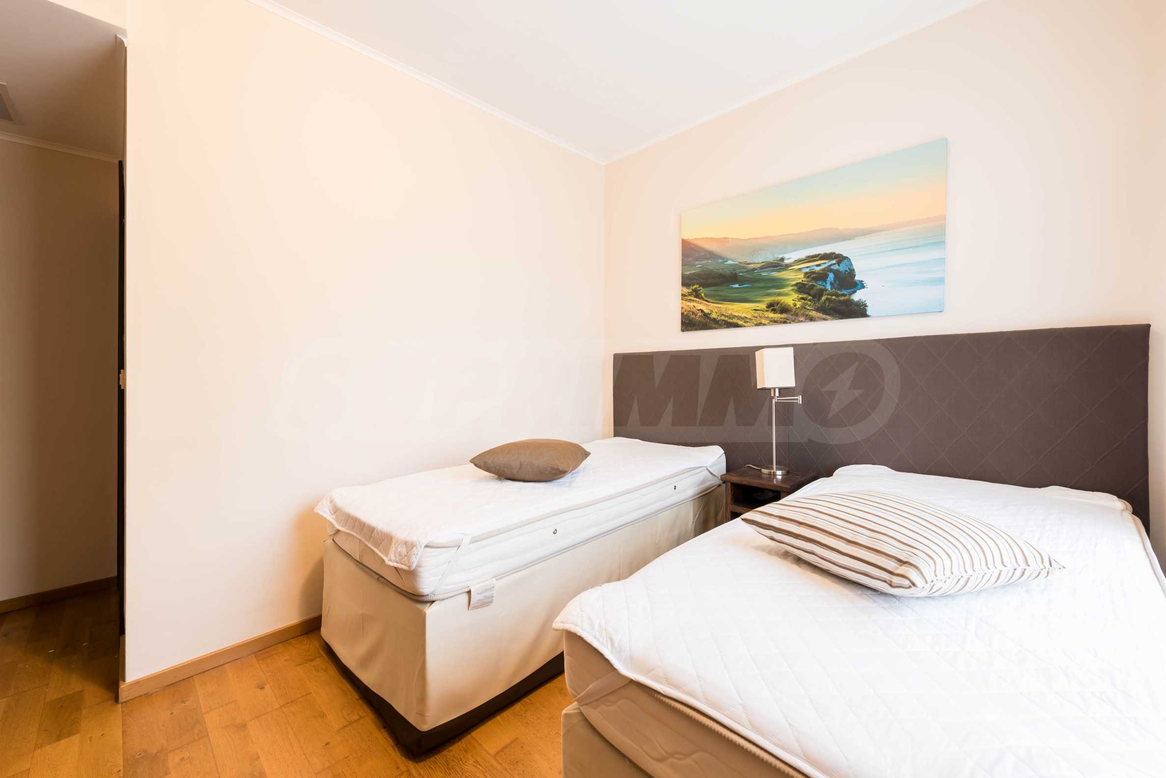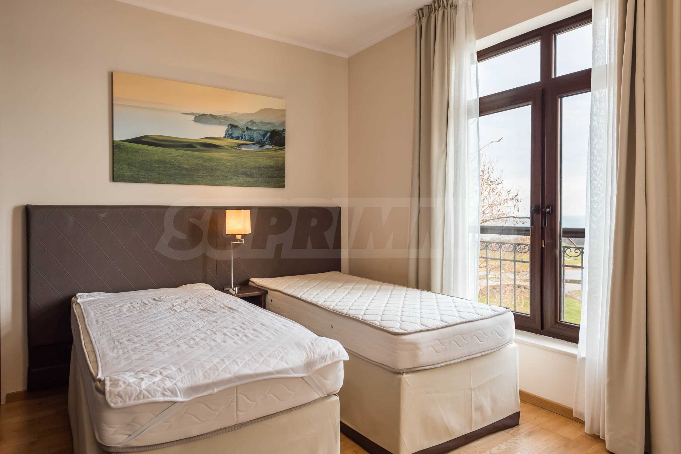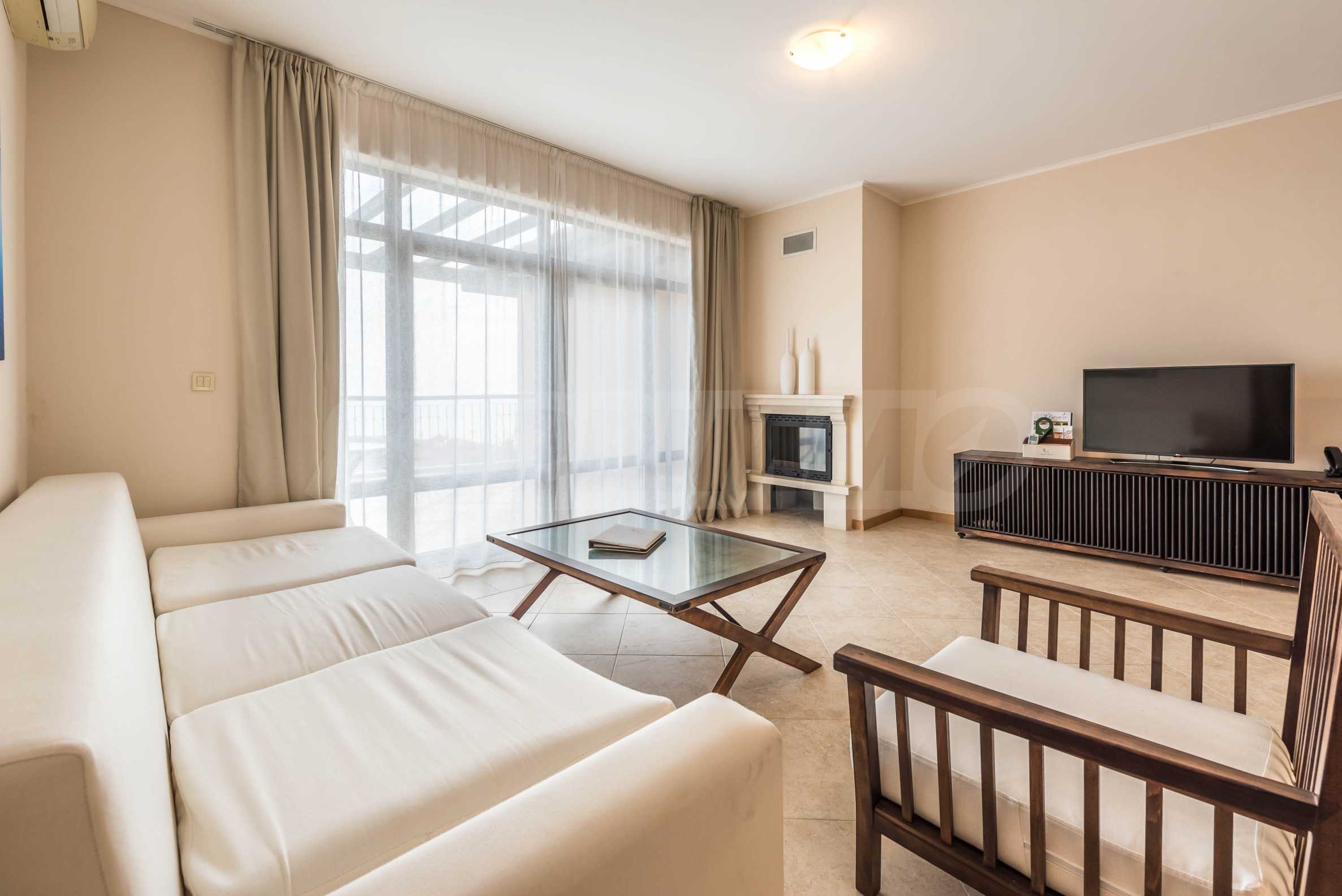 Представляем стильную трехкомнатную квартиру с великолепным видом на море в престижном гольф-комплексе недалеко от Каварны и Балчика.
