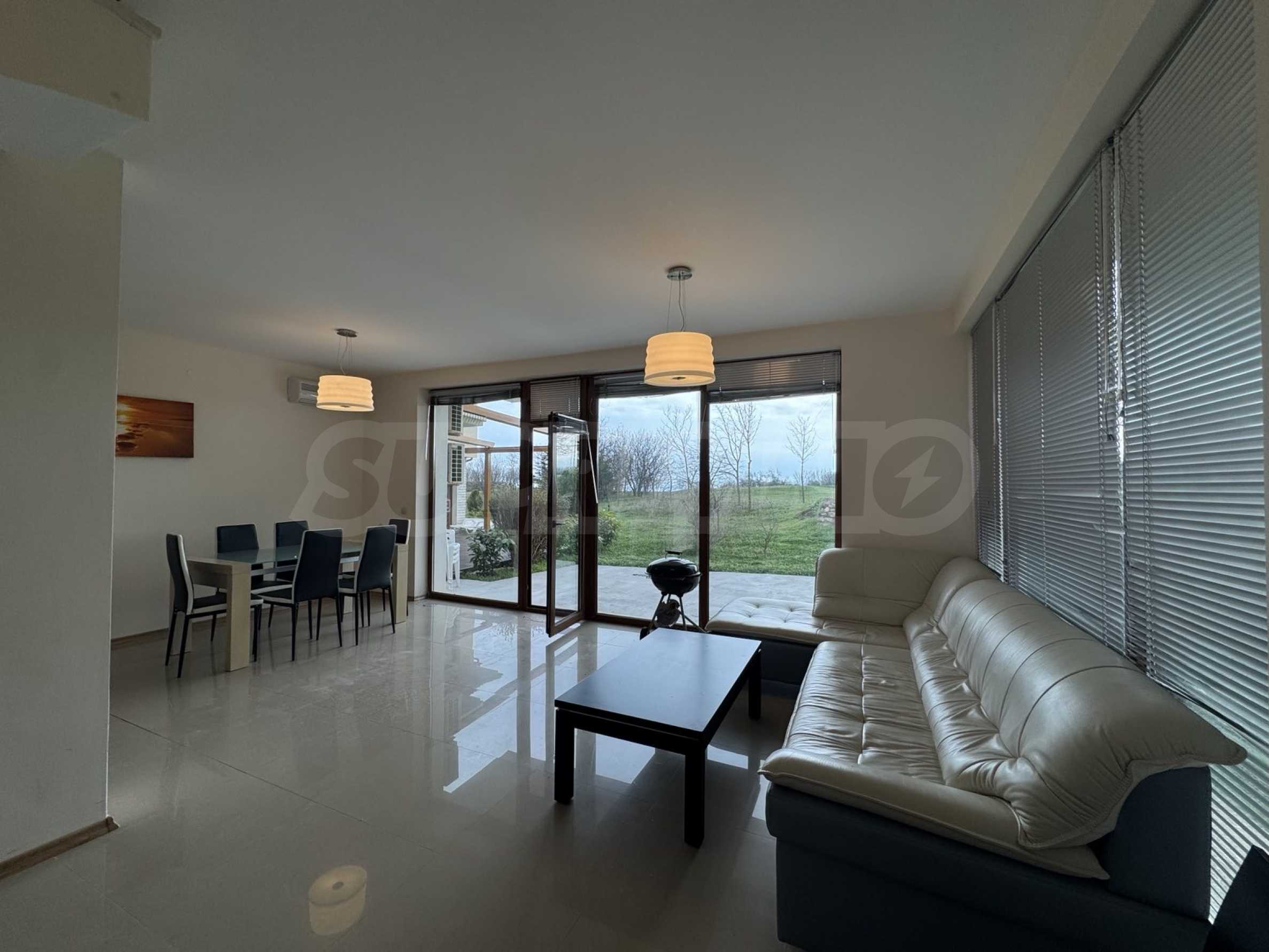 Предлагаем в аренду комфортабельно меблированный двухэтажный дом в популярном комплексе с полями для гольфа и удобствами, в тихом и живописном месте со свежим воздухом, подходящем для семейного отдыха, недалеко от Балчика и моря.