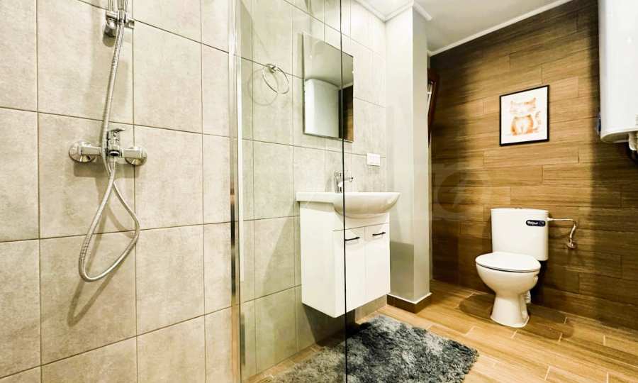 Квартира полностью меблирована и имеет просторную террасу площадью 11 кв. м, с которой открывается прекрасный вид на море - идеальное место для релаксации и отдыха. Здание построено на участке площадью 600 кв. м, с благоустроенным и ухоженным двором. На территории имеется парковочное место, что очень удобно.