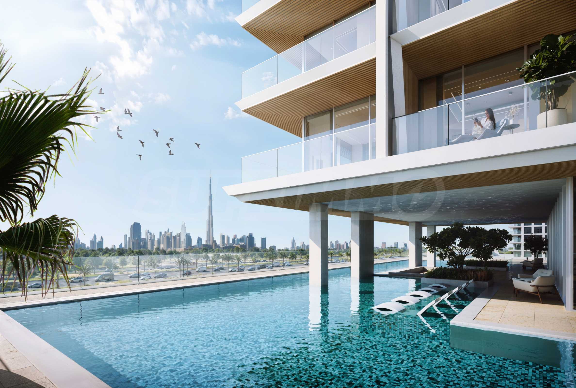 Эта архитектурная жемчужина высотой в 25 этажей представляет собой гармоничное сочетание современных материалов, включая хрустальное стекло, металлическую сетку и полированную латунь, что создает эффектный визуальный образ на горизонте Дубая. Каждый из жилых помещений тщательно продуман, чтобы отразить сдержанную элегантность и комфорт, демонстрируя высококачественную отделку, такую как древесина желтовато-коричневого дуба, экзотический зеленый фарфор и черные витражи.