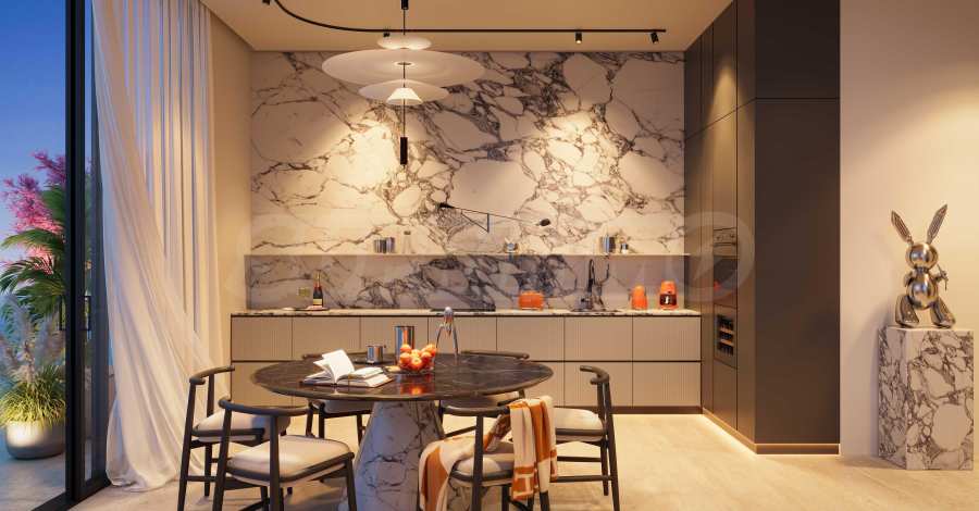 Каждая резиденция спроектирована так, чтобы предложить своим владельцам спокойную обстановку, сочетающую в себе эстетику и комфорт, дополненную захватывающими видами на Персидский залив и городской пейзаж. В ванных комнатах установлена элегантная сантехника Tom Dixon и элегантные роскошные ванны Antonio Lupi. Шкафы Fabel Casa — это продуманное хранилище с изысканным акцентом, а кухонная техника SMEG сочетает в себе современную производительность и классический дизайн. Полы из итальянского камня придадут любому помещению неподвластный времени и изысканный вид. Каждая деталь отражает стремление к комфорту, качеству и стилю.