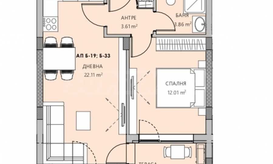 Представляем однокомнатную квартиру в новом небольшом комплексе, расположенном в одном из самых южных новых районов Пловдива — «Остромиле», вдали от городского шума и с видом на Родопские горы.