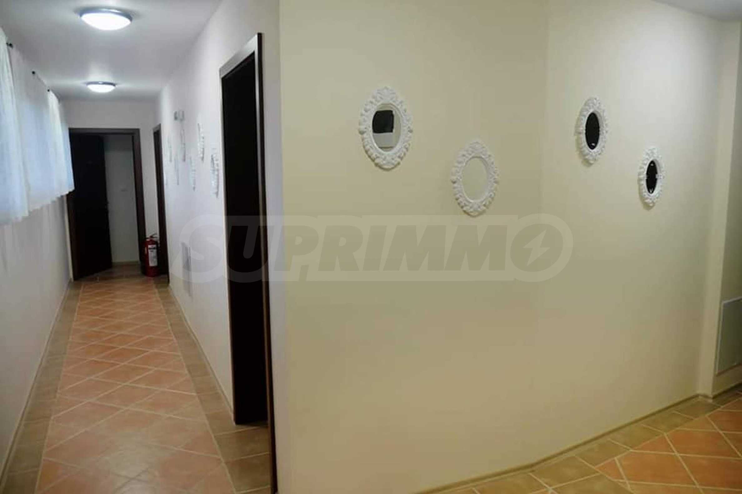 - первый этаж: вестибюль с игровой зоной, ресепшн с туалетом, ванная комната, одни апартаменты со спальней и гостиной с кухней, подсобные помещения;