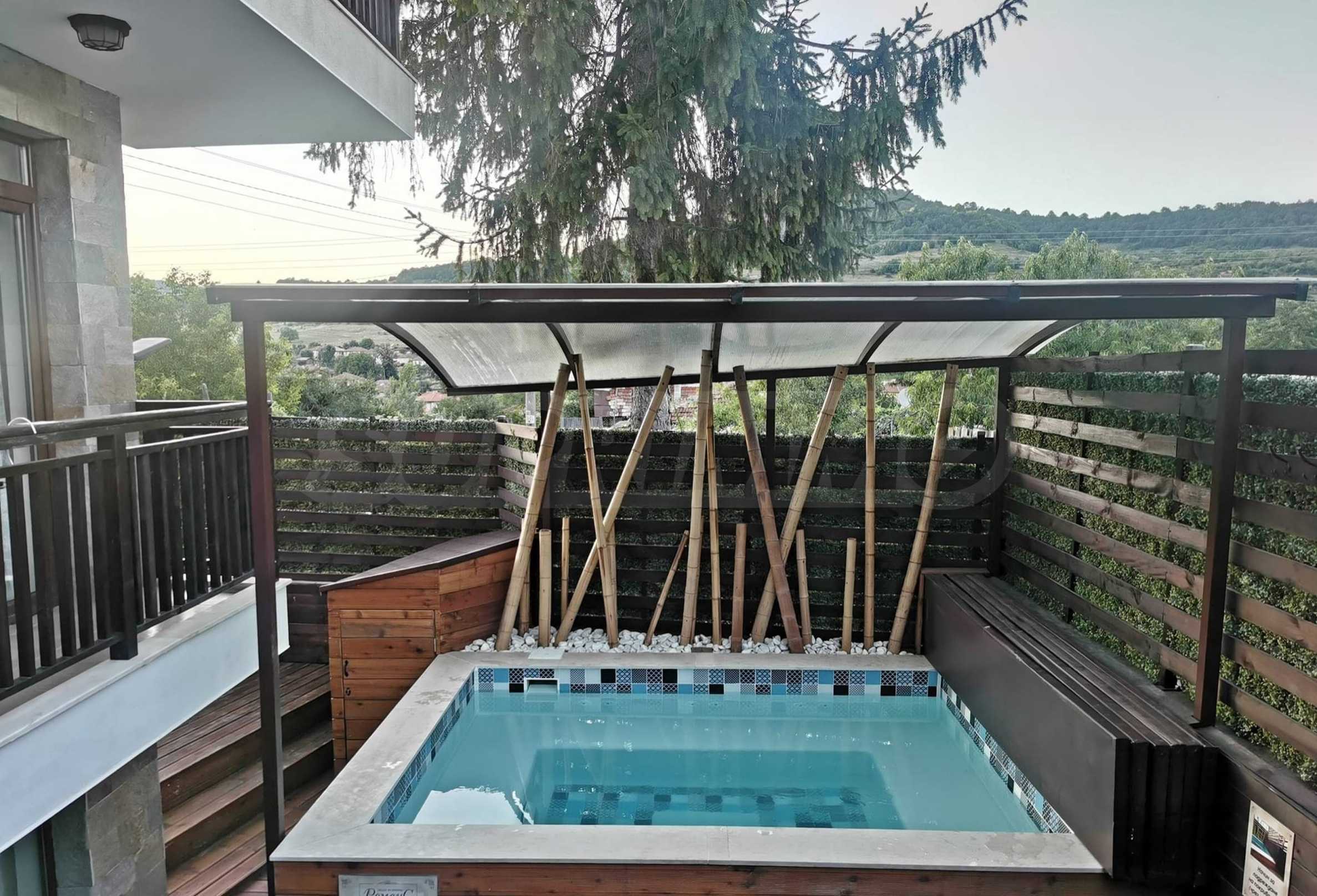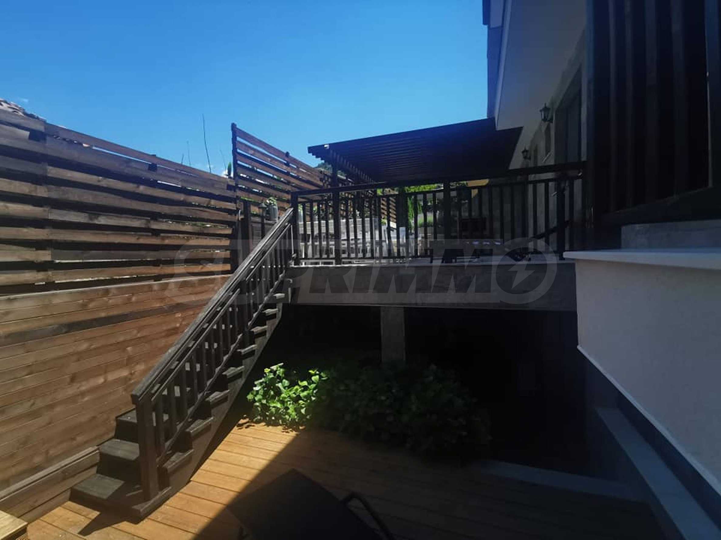 Недвижимость расположена на трех уровнях, построена в 2015 году, общей площадью 542 кв. м. и имеет прекрасно благоустроенный и ухоженный двор площадью 450 кв. м., с зоной барбекю со столами и стульями, открытым джакузи с подогревом на 12 человек и парковкой на четыре машины.