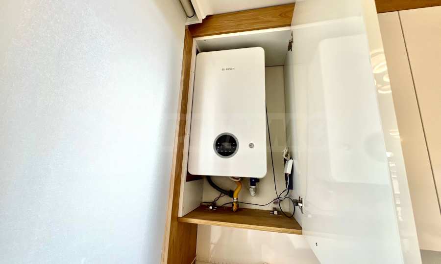 Квартира оборудована газовым отоплением, а для дополнительного комфорта установлены водонагреватель и два кондиционера.