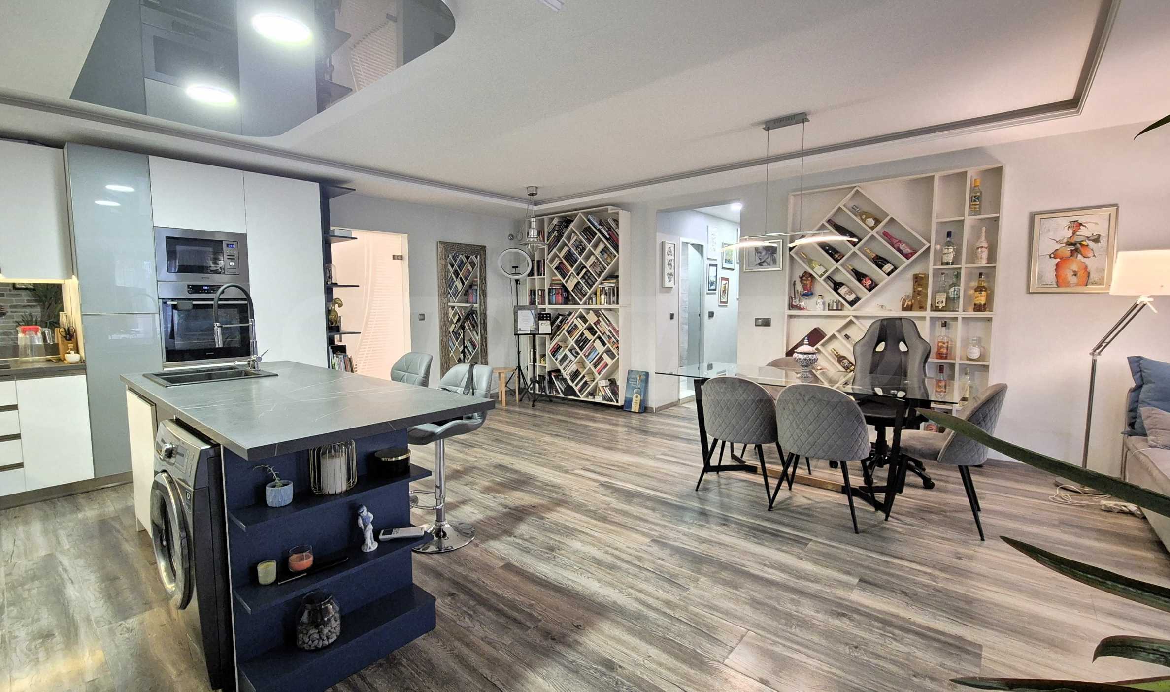 - просторная гостиная, объединяющая уютную зону отдыха, изысканную столовую и полностью оборудованную современную кухню-остров. Пространство создано с вниманием к деталям, с использованием натуральных материалов, интересных акцентов, которые придают интерьеру характер и душу;