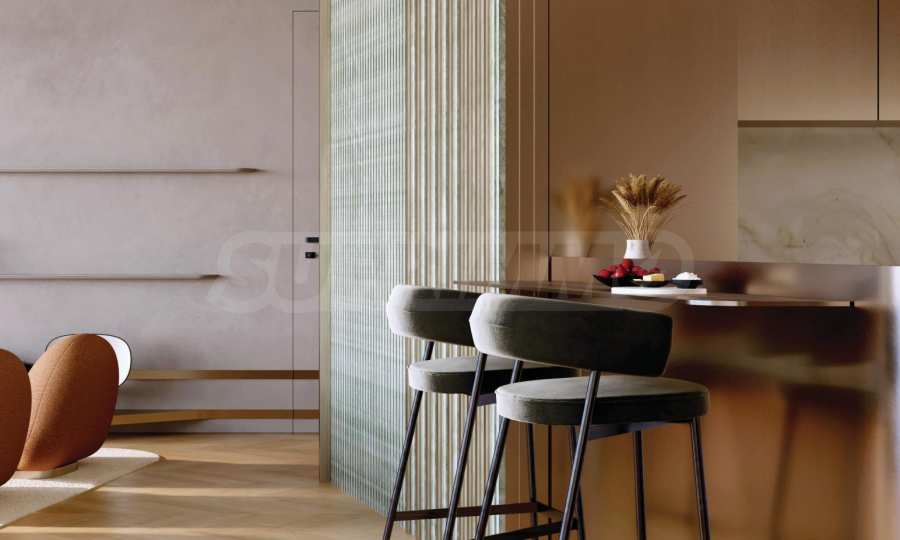 Дизайн интерьера — работа студии Pininfarina, которая воплотила в реальность свое неповторимое видение пространств здания. В каждой квартире использованы отделочные материалы премиум-класса, поставляемые напрямую из Европы — от изысканного мрамора до тщательно обработанной древесины дуба, что гарантирует элегантность и высочайший уровень мастерства каждой поверхности. Индивидуально разработанные детали и высококачественные элементы не только усиливают визуальное воздействие, но и обеспечивают оптимальную функциональность и комфорт, отражая глубокое понимание изысканного образа жизни. Электроприборы на кухне — от Miele, одного из ведущих мировых брендов в этой области. Каждая квартира оборудована очистителями воздуха и воды, а также подогревом пола в ванных комнатах.