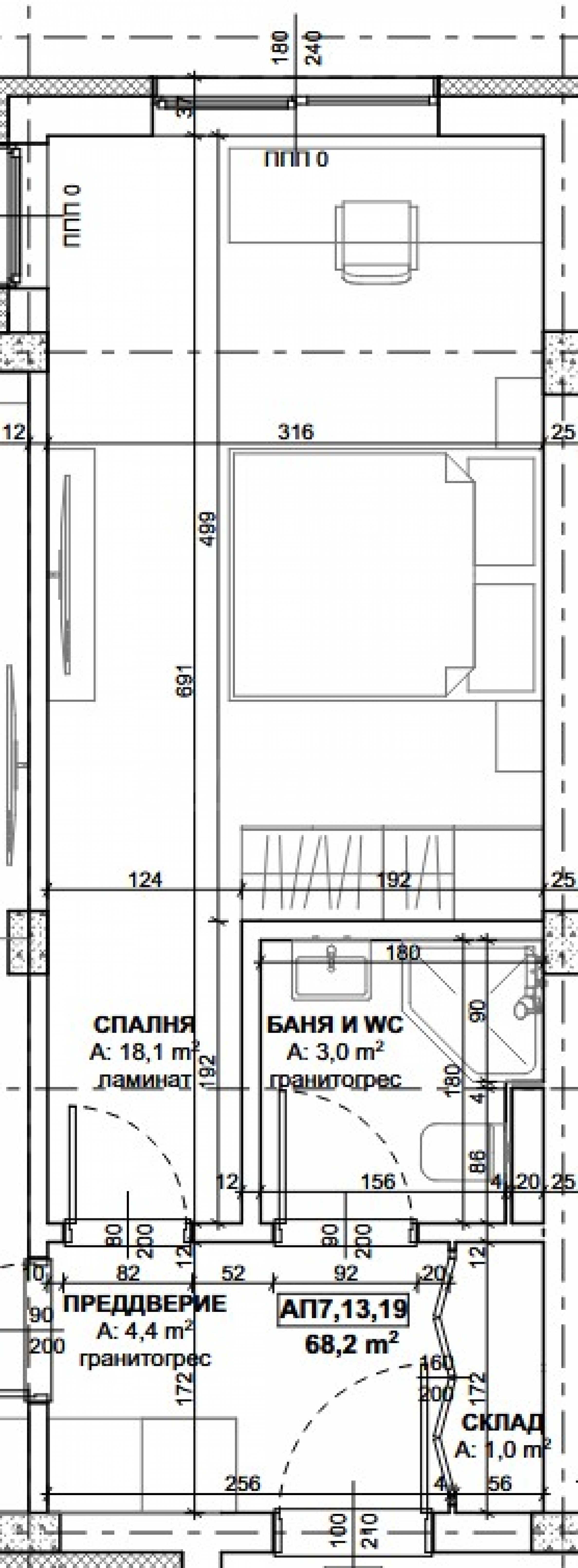 Выдается в степени готовности согласно Болгарским строительным нормам, под шпатлевку и стяжку.