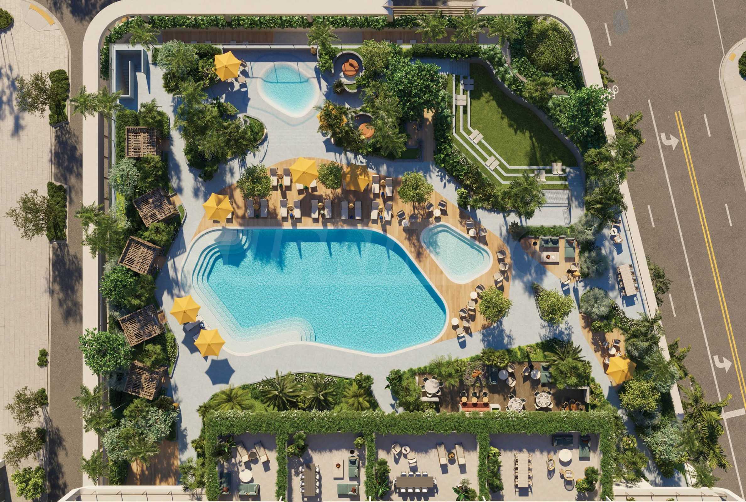 В здании есть два бассейна: один на террасе восьмого этажа и другой на верхнем этаже. В первом есть собственный бар с напитками и едой, кабинки для переодевания, зоны отдыха и сад, а во втором — панорамный вид на населенный пункт и океан на 360 градусов, что создает ощущение погружения в пульсирующий населенный пункт. На восьмом этаже вы также найдете детские комнаты с разнообразными развлечениями, игровую комнату, спортивные симуляторы и кинотеатр под открытым небом. ?