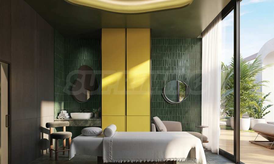 Жан Жорж создает изысканную, яркую и полную вкуса еду — это же чувство воплощено и в архитектуре здания. Просторные и светлые пространства, яркие цветовые решения и художественные элементы присутствуют как в общественных зонах, так и в самих апартаментах. С верхних этажей открывается захватывающий вид на оживленный населенный пункт и бирюзовые воды Атлантического океана.