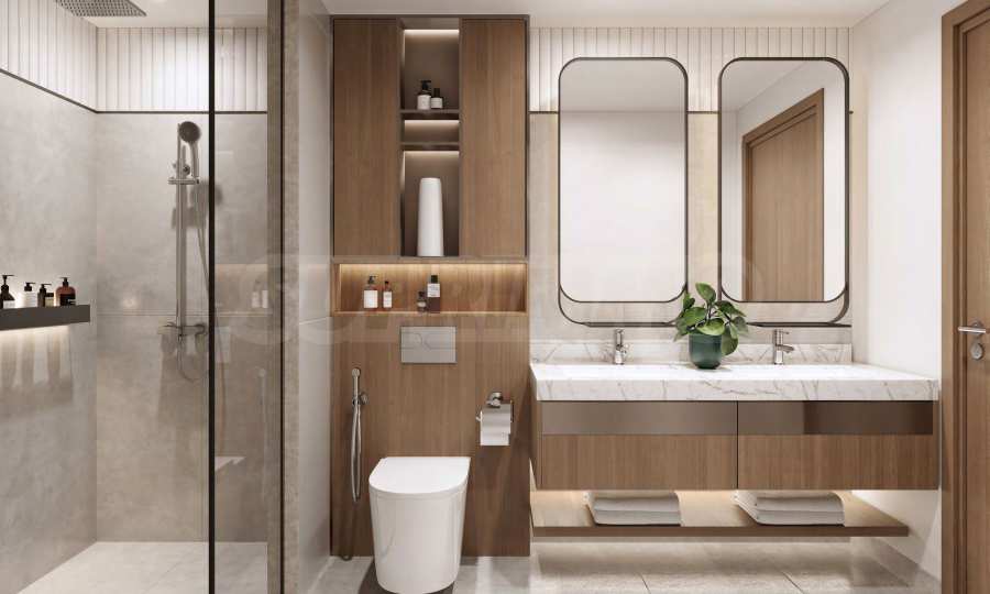Ванные комнаты впечатляют элегантными стеклянными раковинами, стильными шкафчиками и функциональными полотенцесушителями. Мягкое освещение подчёркивает современный дизайн, добавляя тепла и создавая ощущение спокойствия. Высококачественные материалы гарантируют долговечность и роскошь, превращая каждую ванную комнату в идеальное сочетание стиля и практичности.