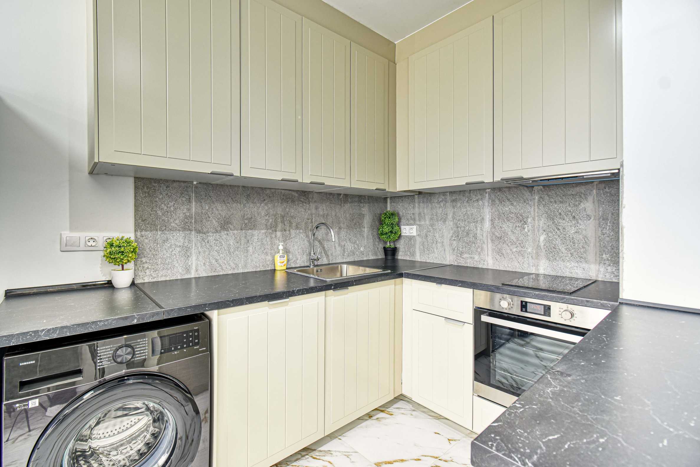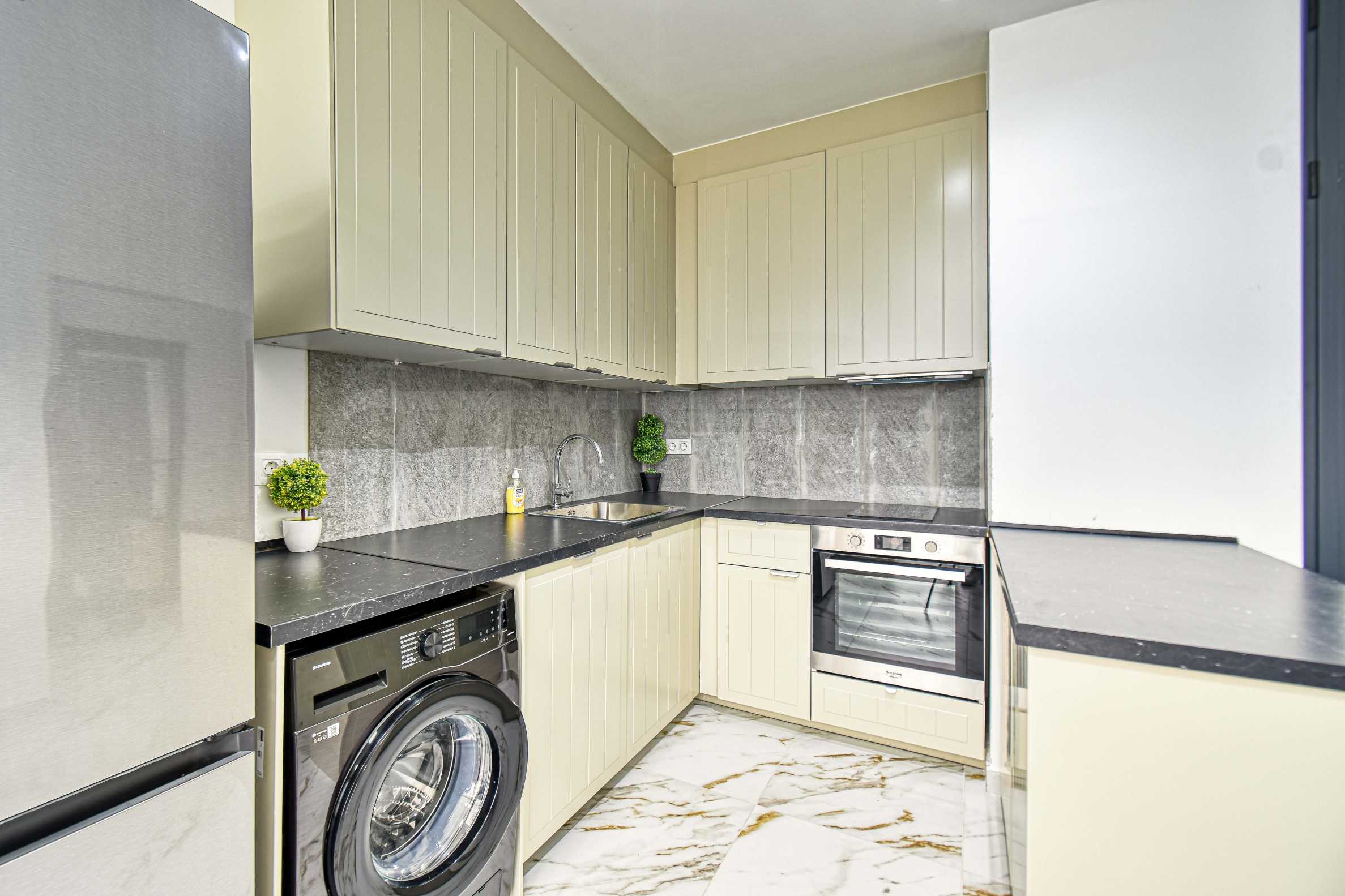 Квартира расположена на высоком этаже и предлагает современную планировку - прихожая, гостиная с кухней, уютная спальня, ванная комната с туалетом и кладовая. Квартира полностью укомплектована новой электротехникой и высококачественными отделочными материалами.
