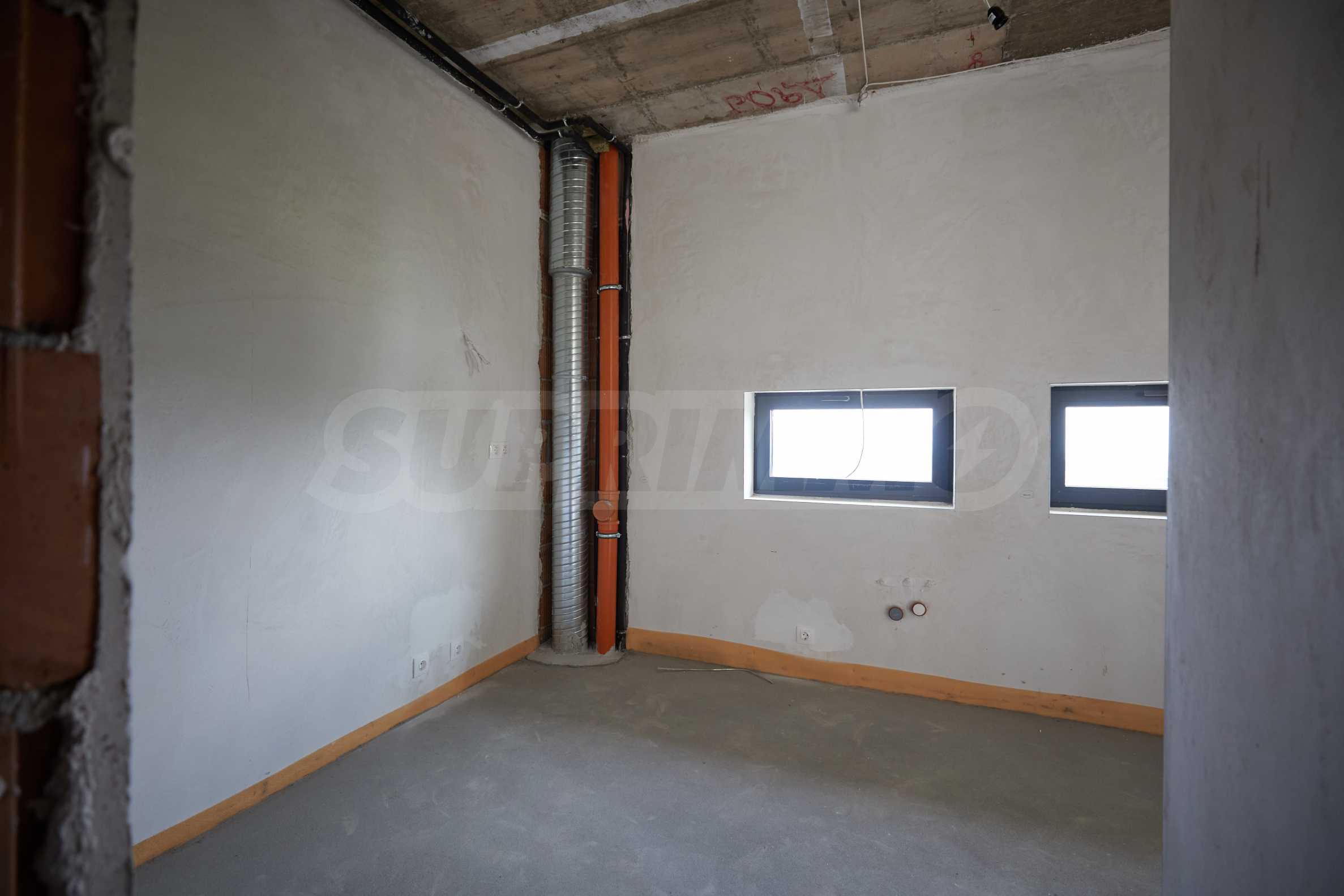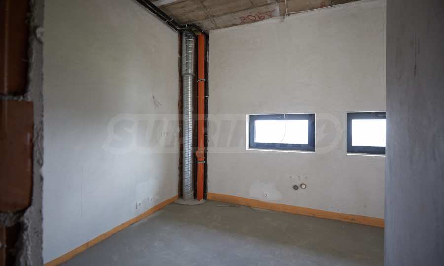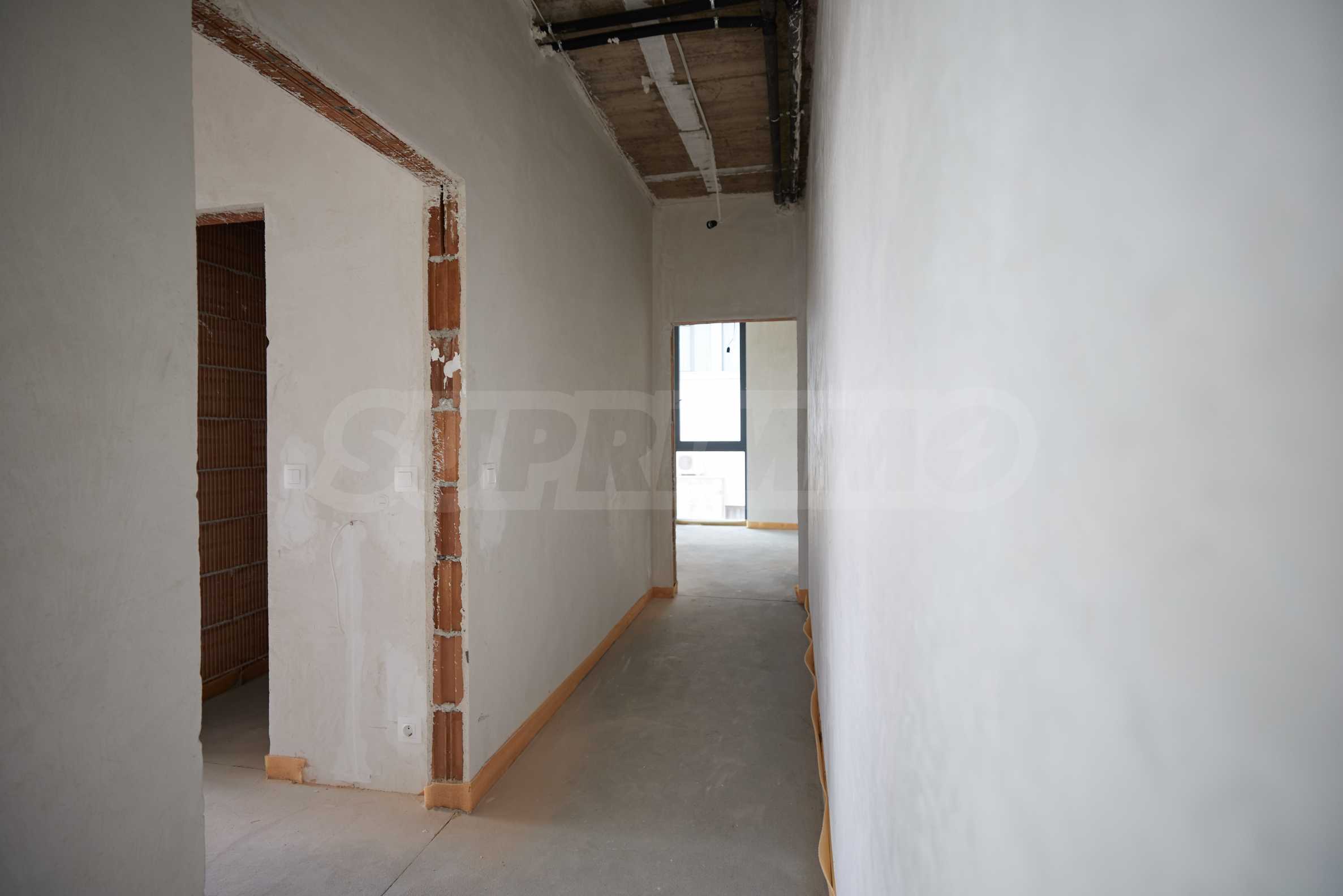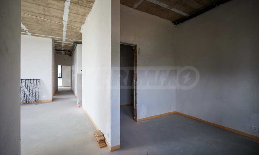 Квартира расположена на третьем жилом этаже, окна выходят на юго-восток/северо-восток. Общая площадь составляет 155,76 кв. м, из которых 133,1 кв. м приходится на жилую площадь, а 22,66 кв. м – на общие помещения. С террасы, выходящей в гостиную, открывается вид на Софию. Пространство организовано таким образом, чтобы обеспечить максимальное освещение и комфорт проживания.