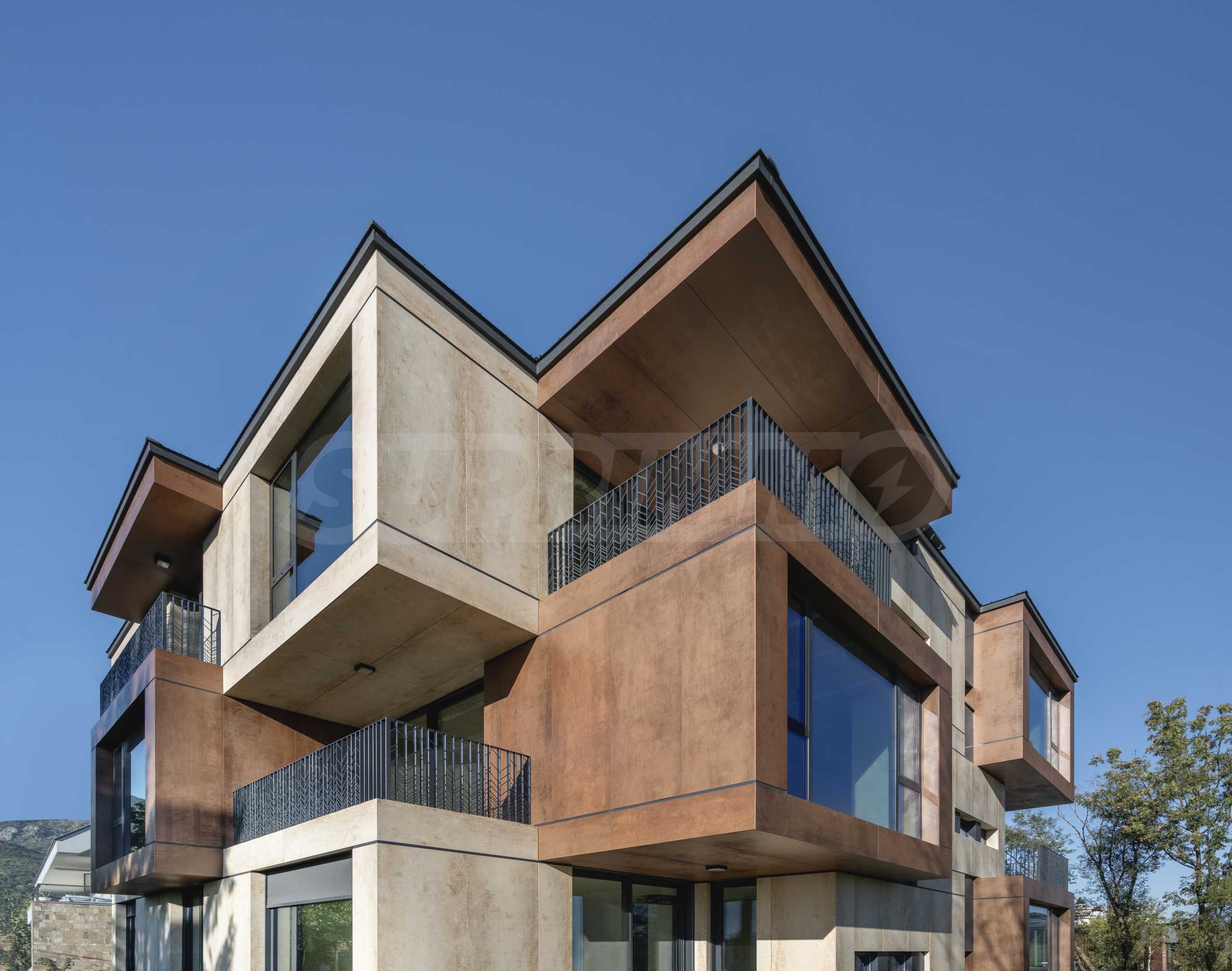 Здание спроектировано с акцентом на естественное освещение, оптимальные высоты и чистые объемы. Жилые помещения ориентированы на панорамные виды города или благоустроенные внутренние дворы, что создает характерное ощущение масштаба, близкое к индивидуальному жилому дому. Фасад выполнен из натуральных материалов, что обеспечивает гармонию с окружающей средой и горным ландшафтом.