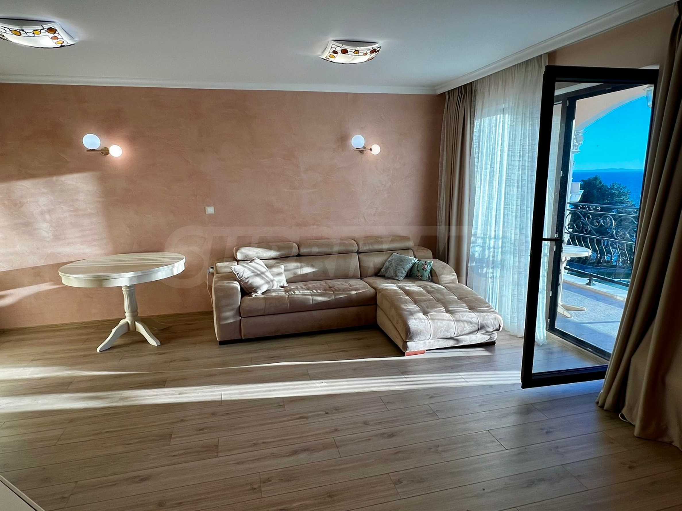 Квартира общей площадью 114 кв. м расположена на 5 этаже с прекрасным панорамным видом на море, залив и бассейн.