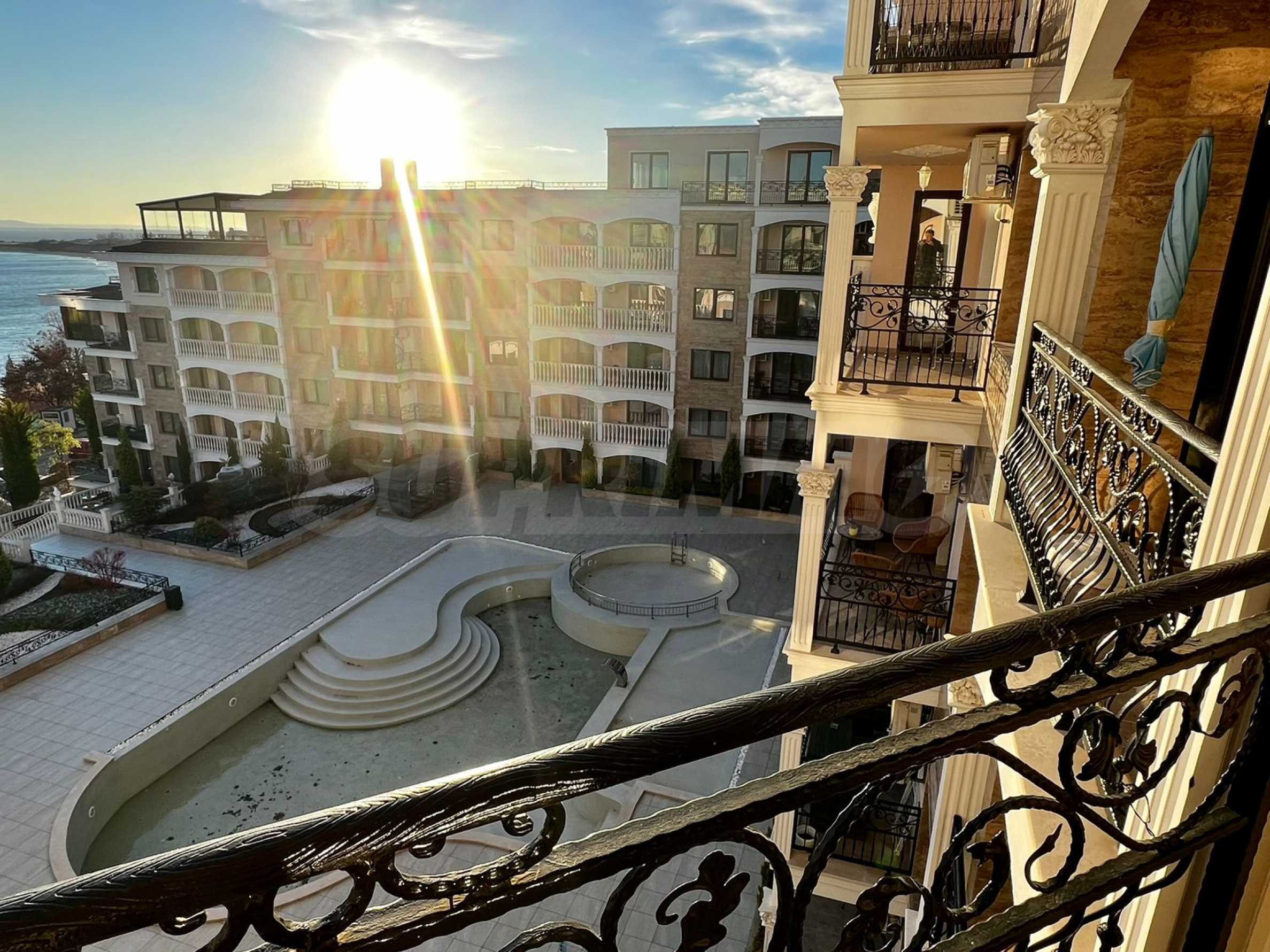 Представляем на продажу трехкомнатную квартиру в элегантном комплексе на первой линии моря, рядом со Старым городом в Несебре.