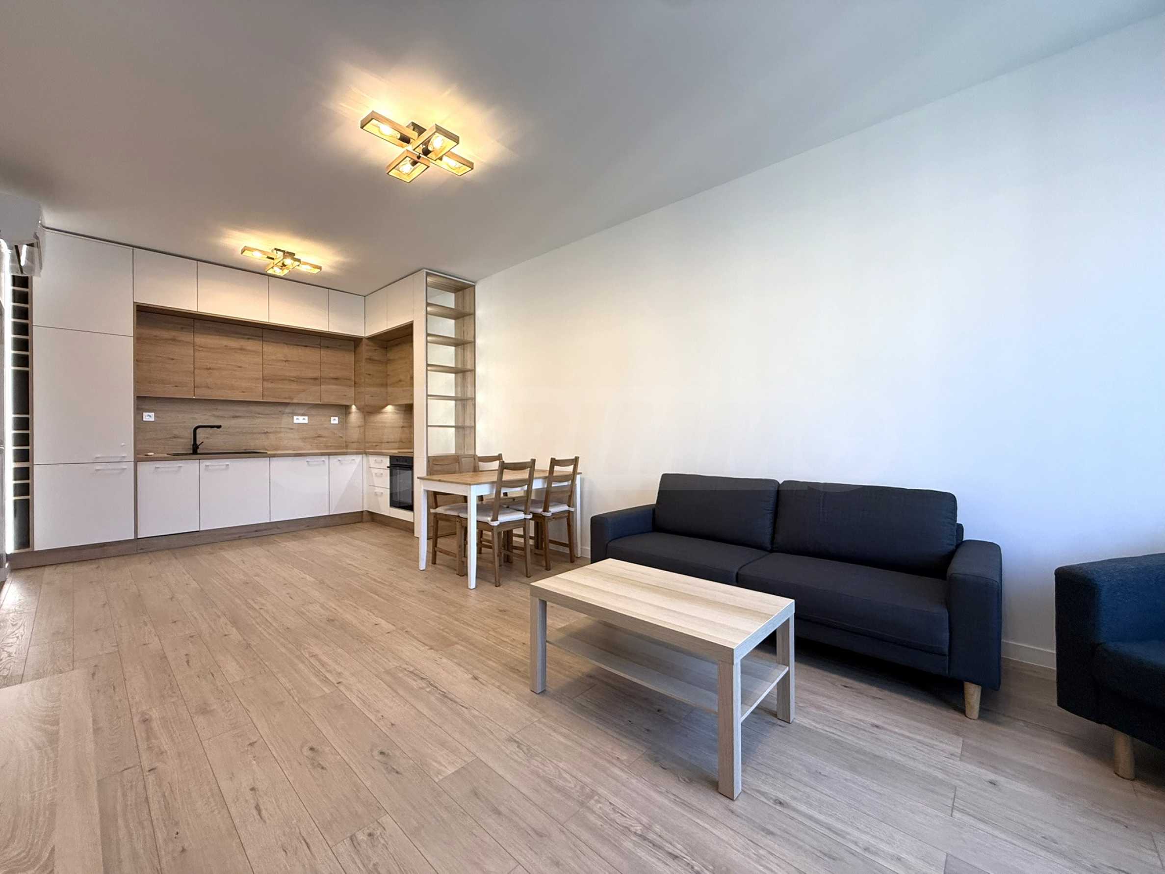 Квартира сдаётся в аренду с меблировкую, современной кухней с высококачественной техникой, полностью оборудованными ванными комнатами, двумя кондиционерами и центральным отоплением. Окна выходят на юг, с панорамным видом на гору Витоша и населенный пункт.