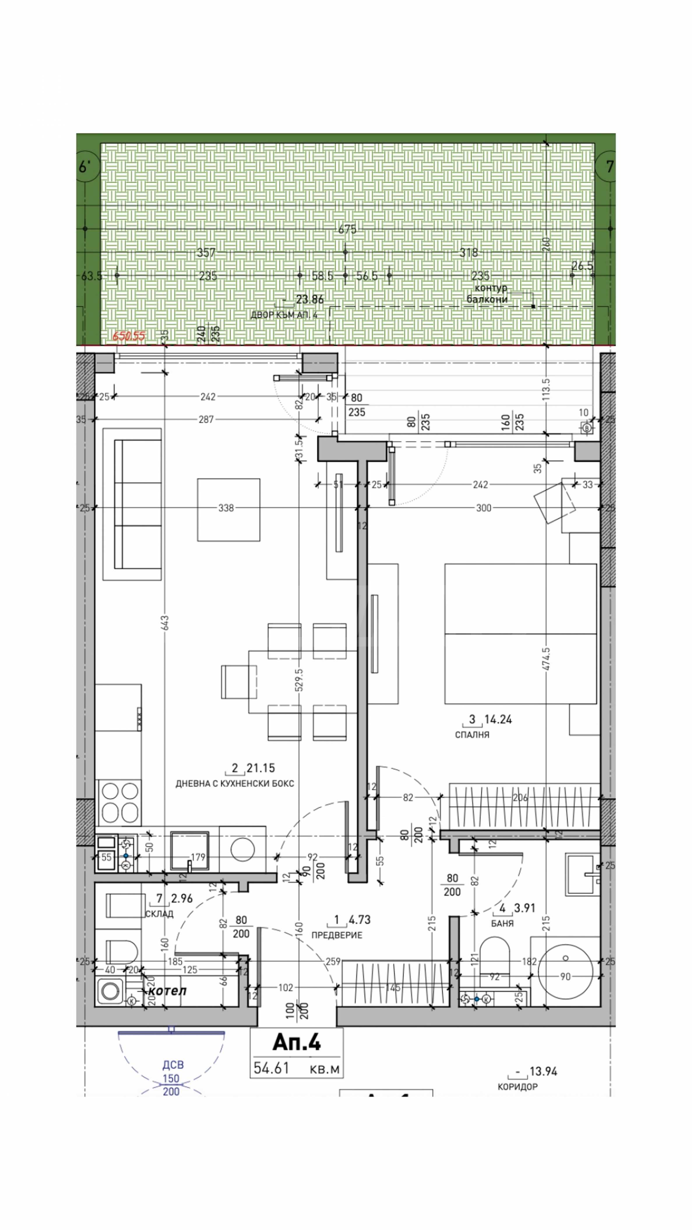 • Двор с выходом из гостиной и спальни – 23,86 кв.м.