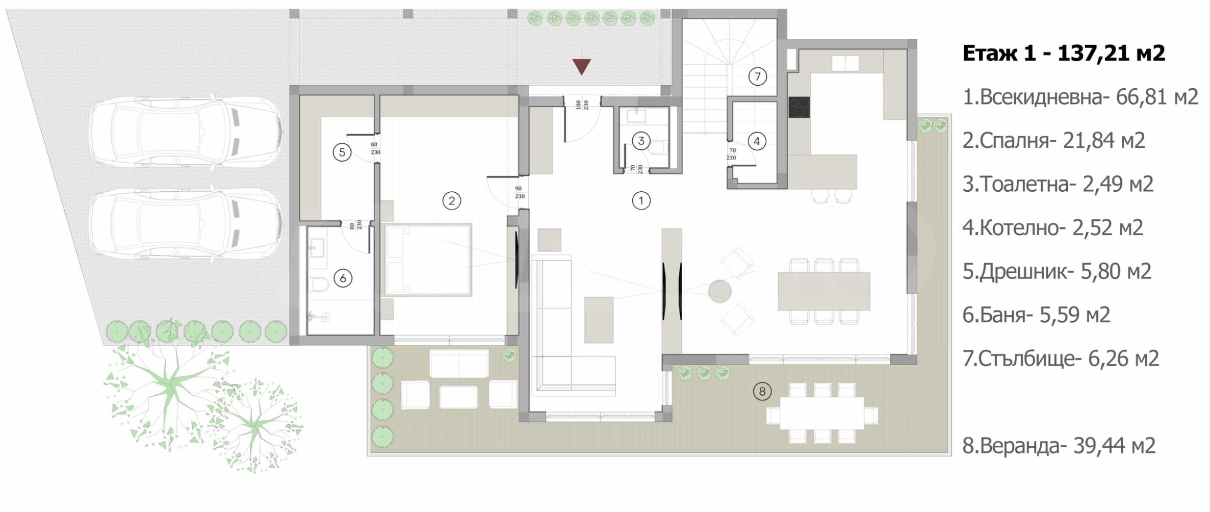 Первый этаж общей площадью 137,21 кв. метров: