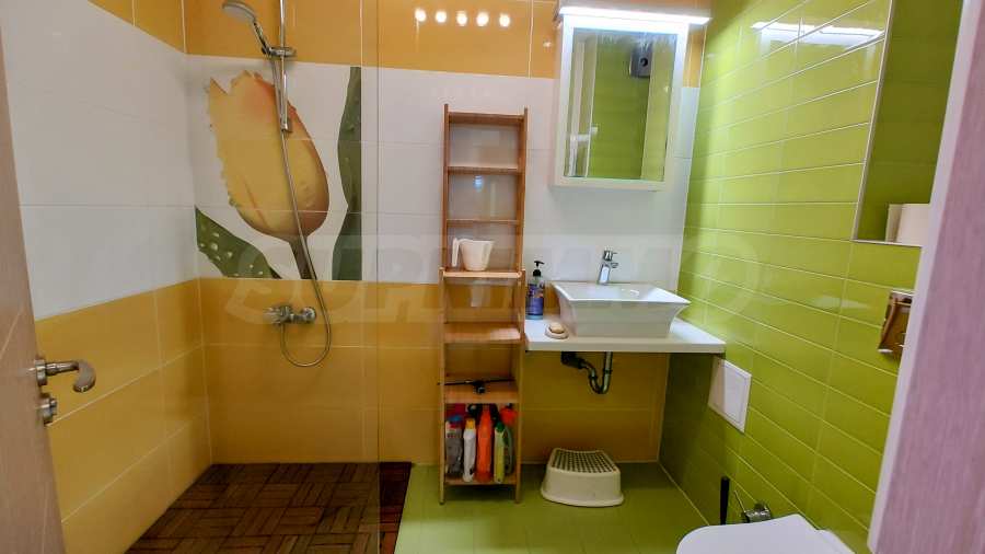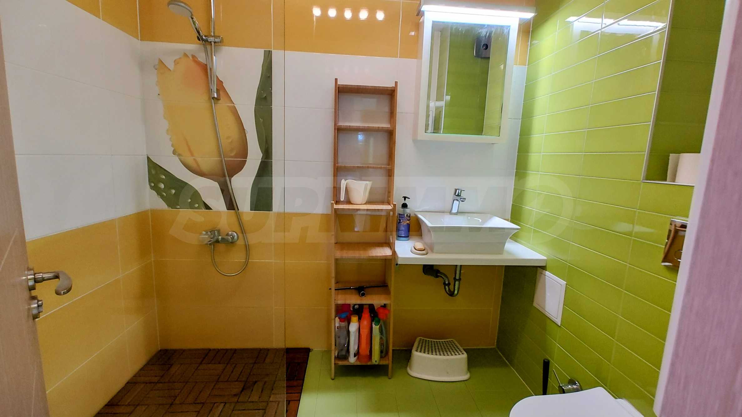 Квартира очень теплая и светлая, окна выходят на юго-запад и северо-восток, обеспечивая естественное освещение в течение всего дня. Из гостиной открывается приятный панорамный вид на гору Витоша. Планировка функциональная и комфортная: три отдельные спальни, просторная гостиная, столовая с мини-кухней, ванная комната с туалетом, отдельный туалет, просторный вход со встроенными шкафами, застекленный балкон и уютный зимний сад.