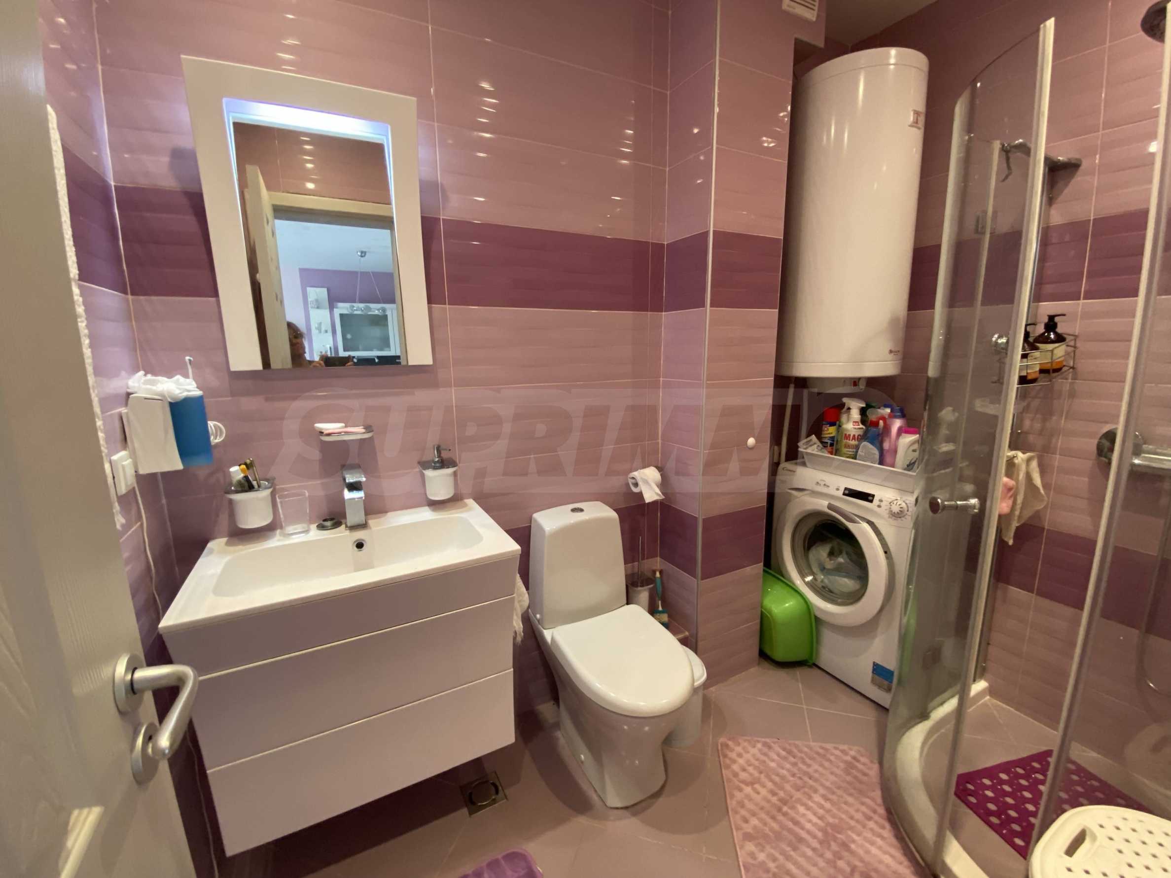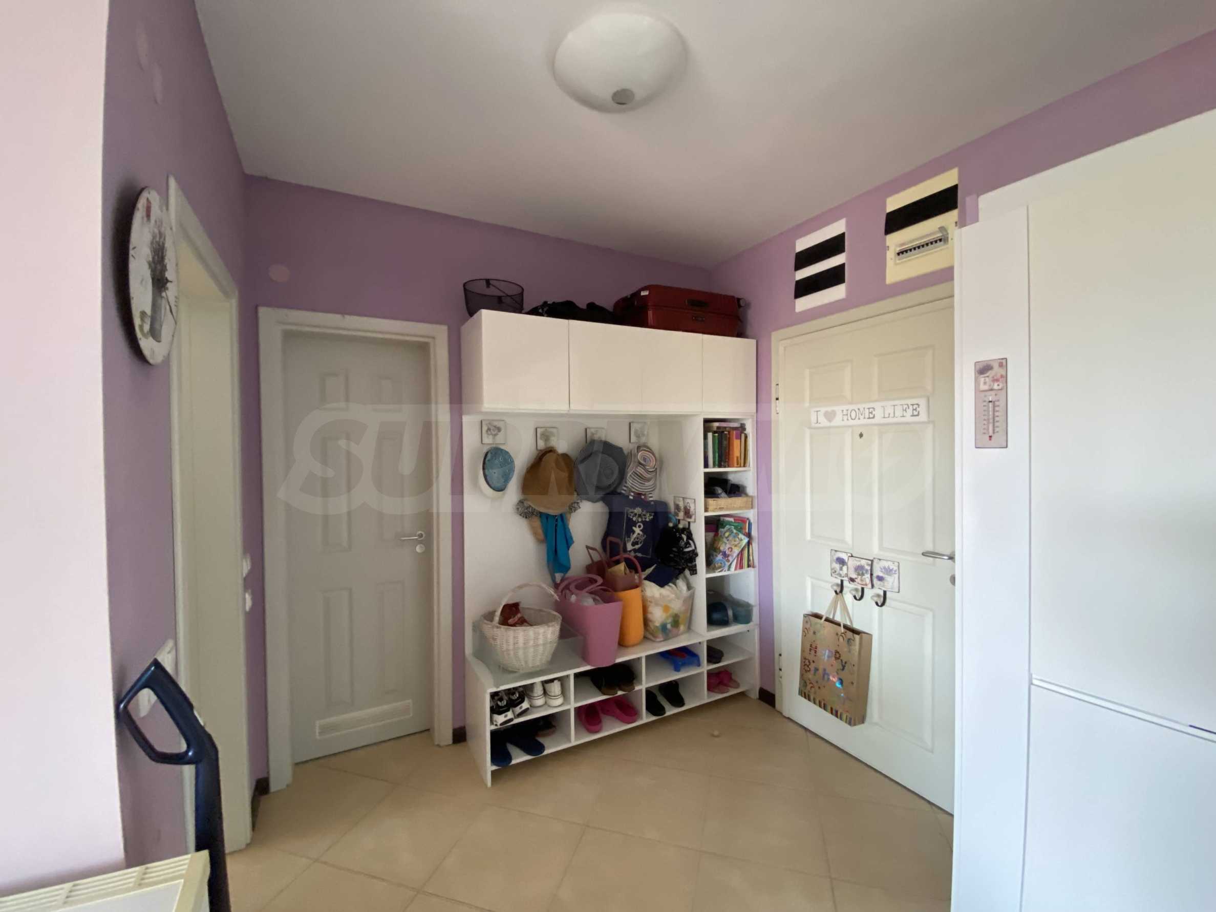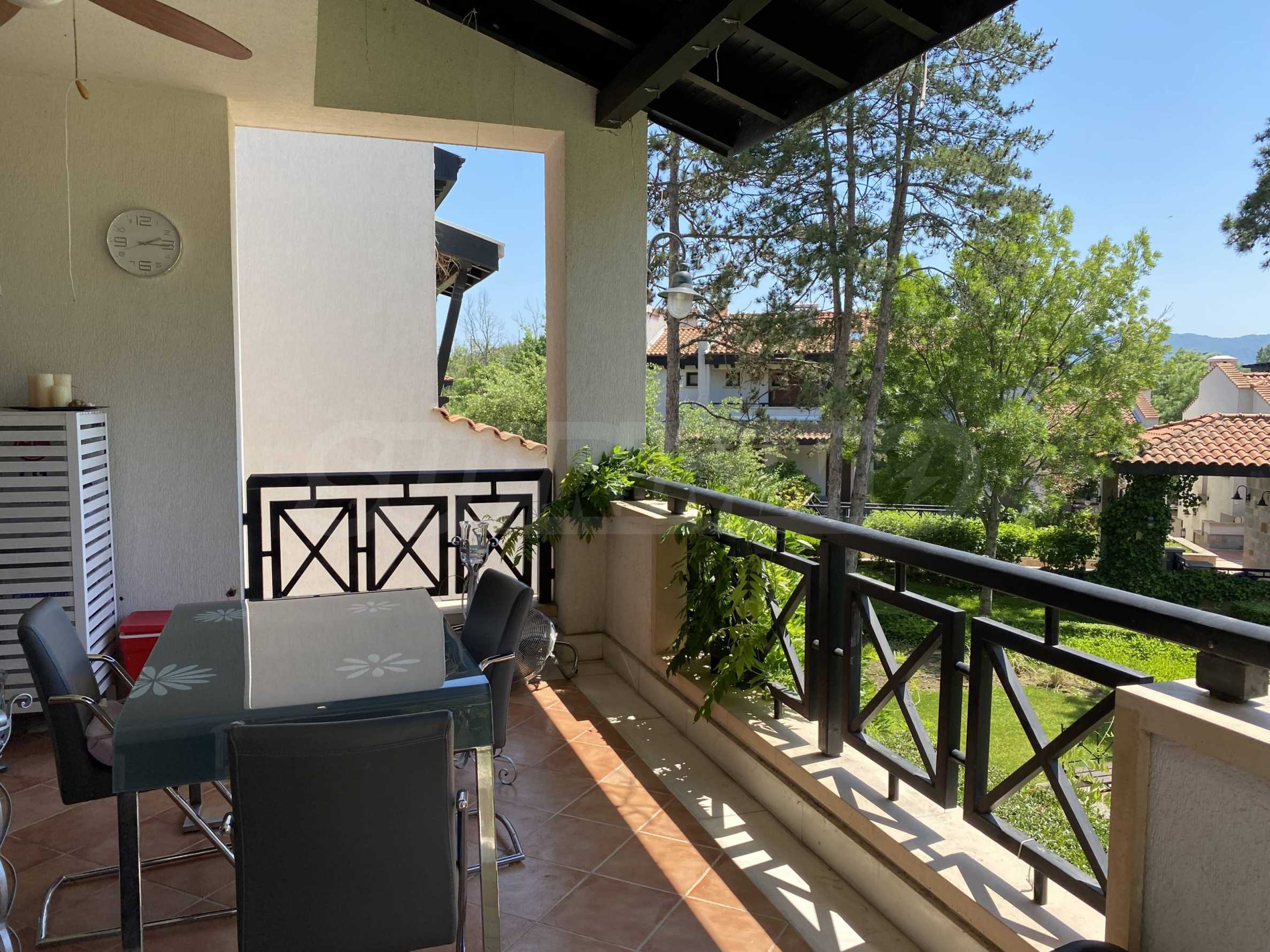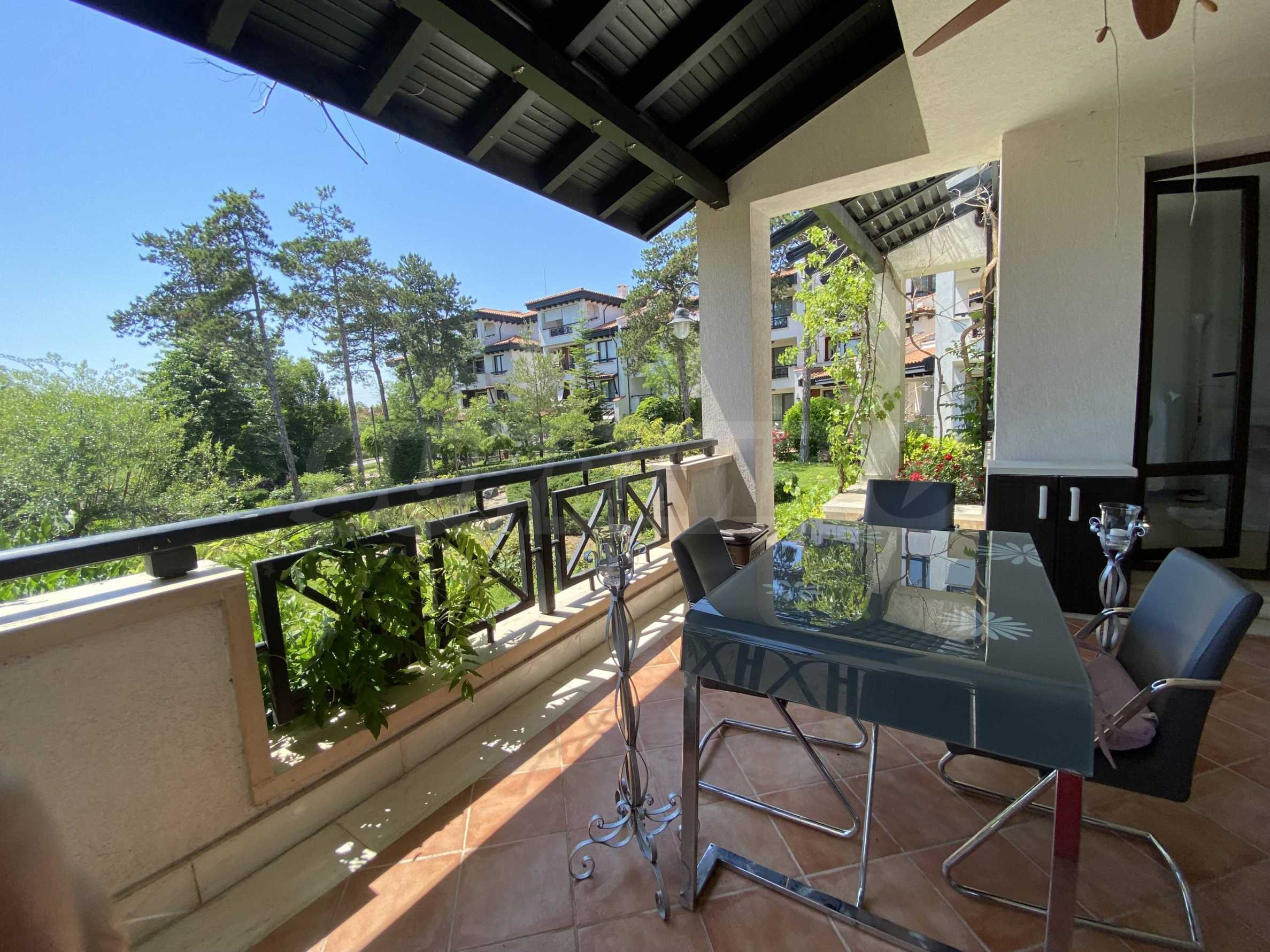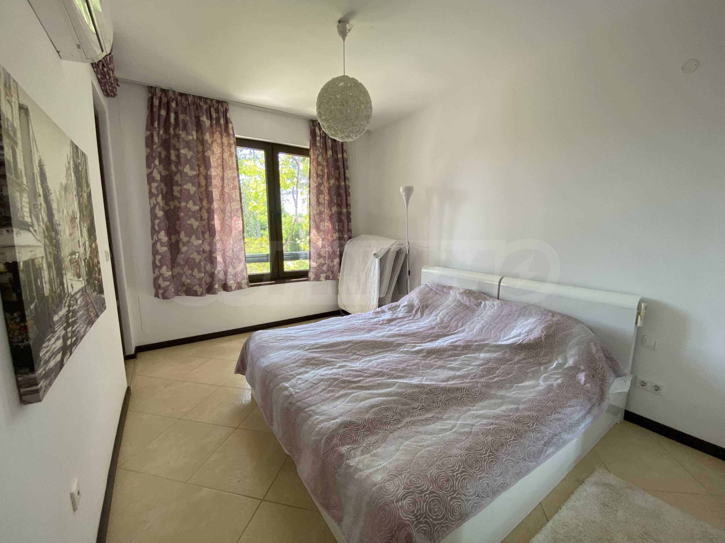 Представляем на продажу комфортабельную меблированную двухкомнатную квартиру площадью 99 кв. м, в престижном прибрежном комплексе на первой линии от моря, рядом с популярным пляжем Оазис на курорте Лозенец.