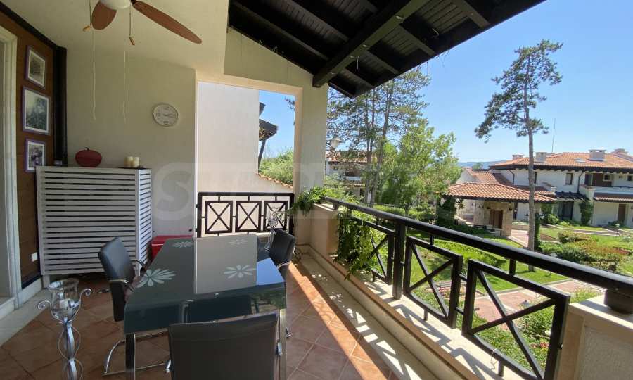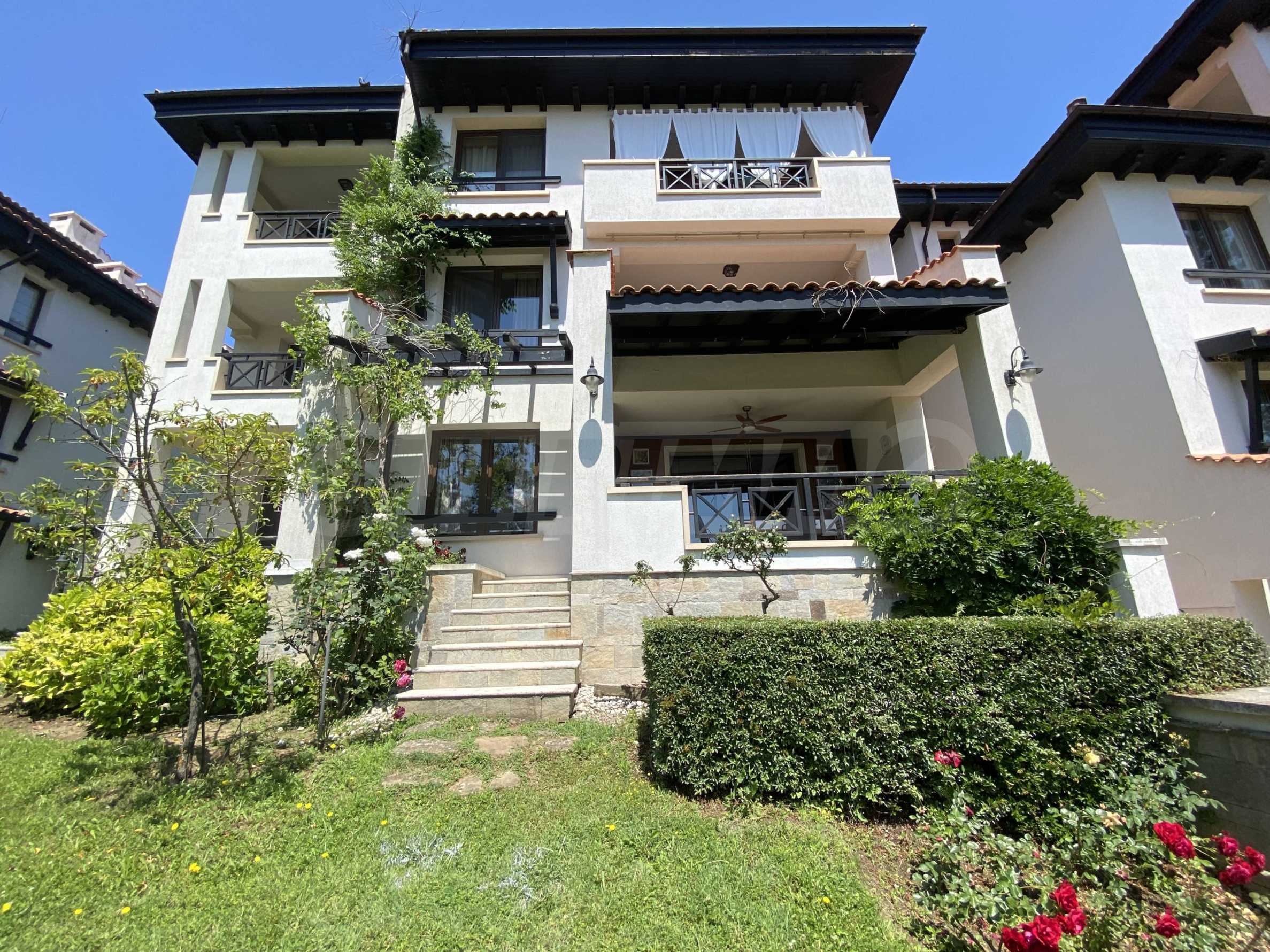 Квартира с высокими потолками и светлыми комнатами, элегантно обставленная и комфортабельно оборудованная, подходит как для личного пользования, так и для инвестиций. С веранды и из комнат открывается прекрасный вид на благоустроенные и цветущие сады.
