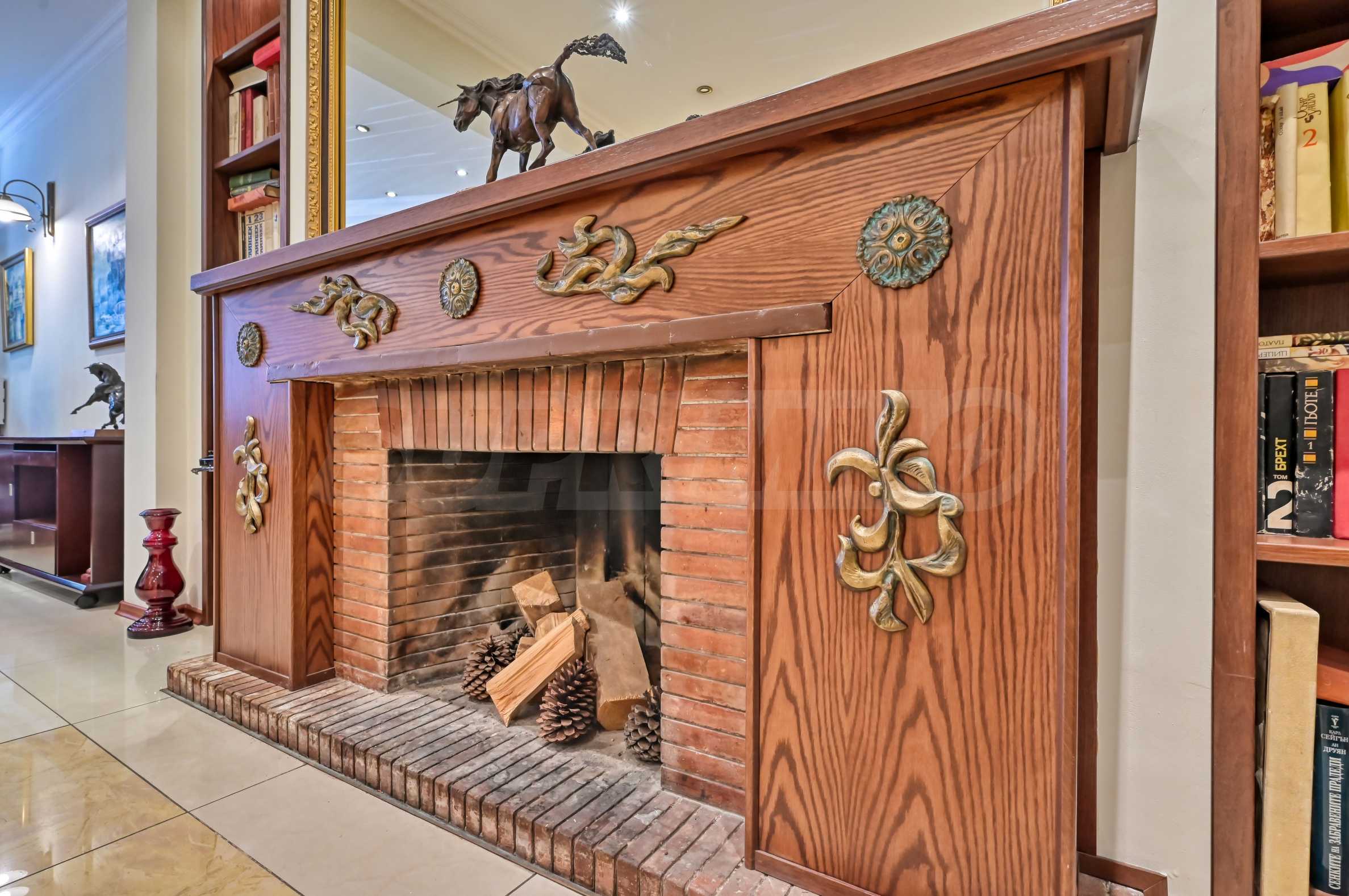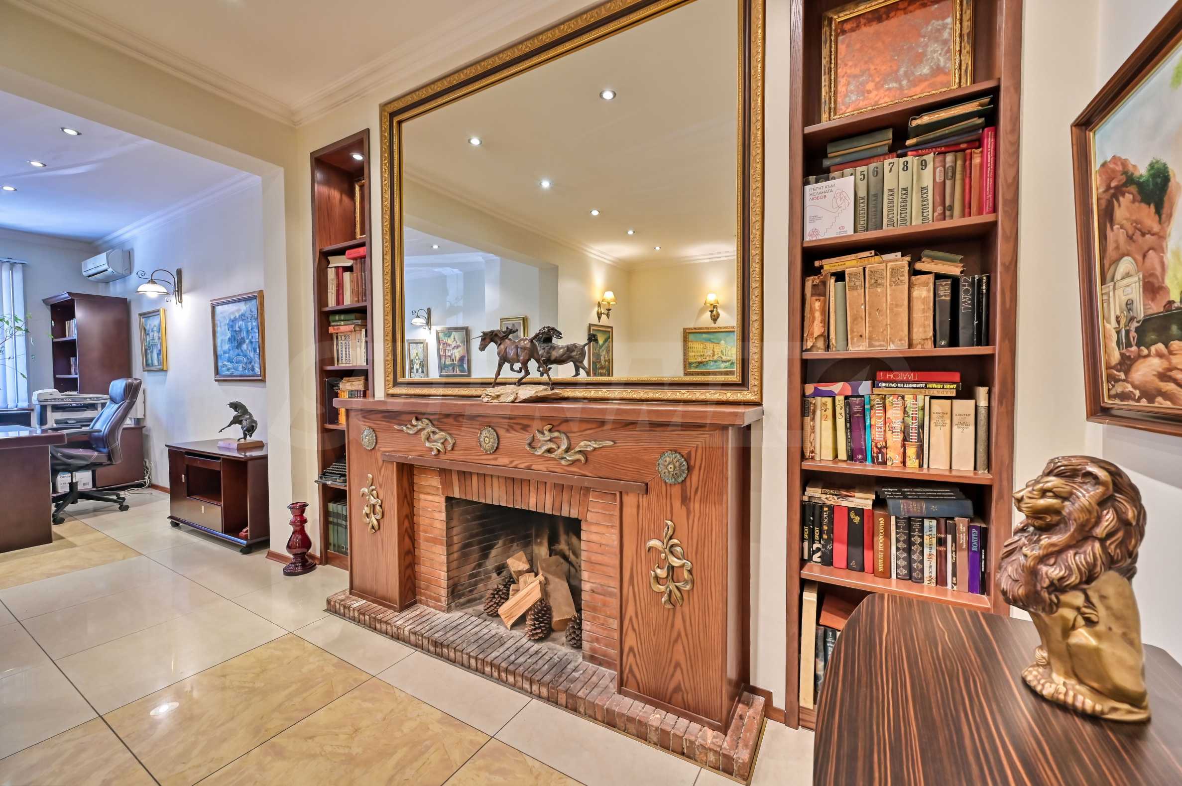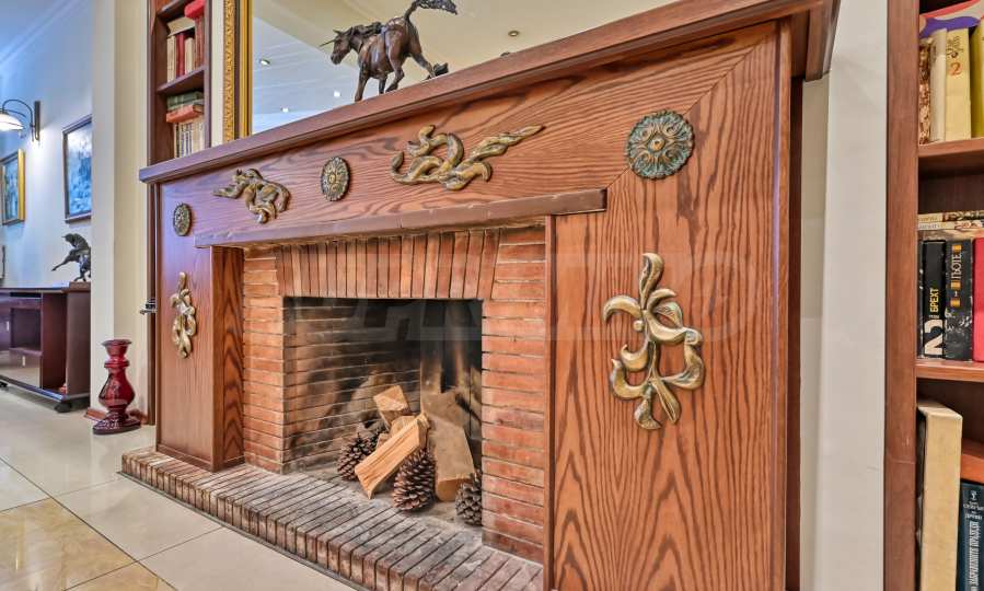 Действующий камин в центральной части офиса, создающий атмосферу уюта и аристократизма.
