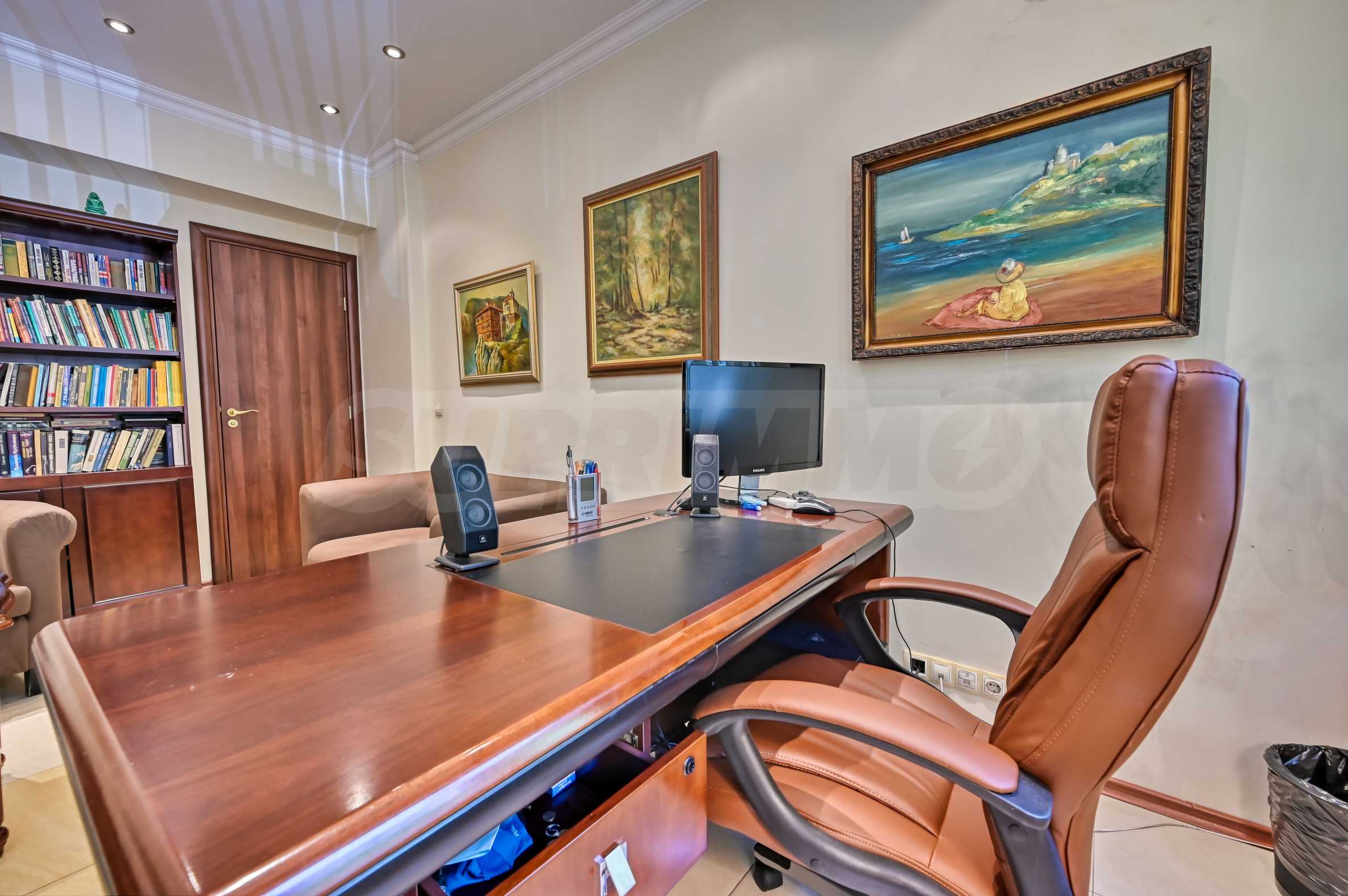 Офис полностью меблирован в элегантном классическом стиле. Интерьер включает: