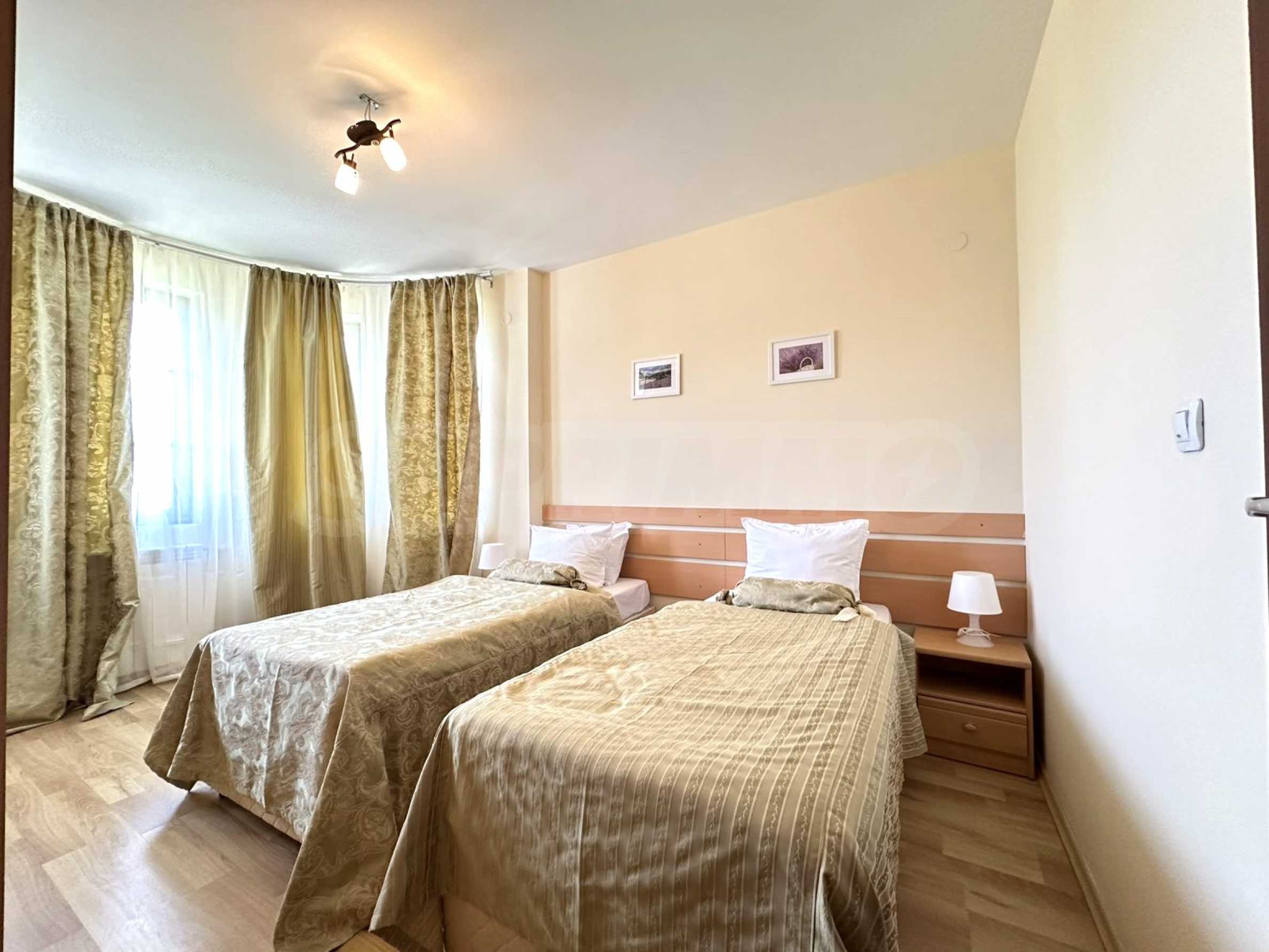 Дом расположен в комплексе «Сосновая роза», который предлагает на своей территории фитнес-центр, теннисный корт, крытый бассейн, детскую игровую площадку, круглосуточную охрану, зеленые зоны и вид на горы Пирин и Рила.