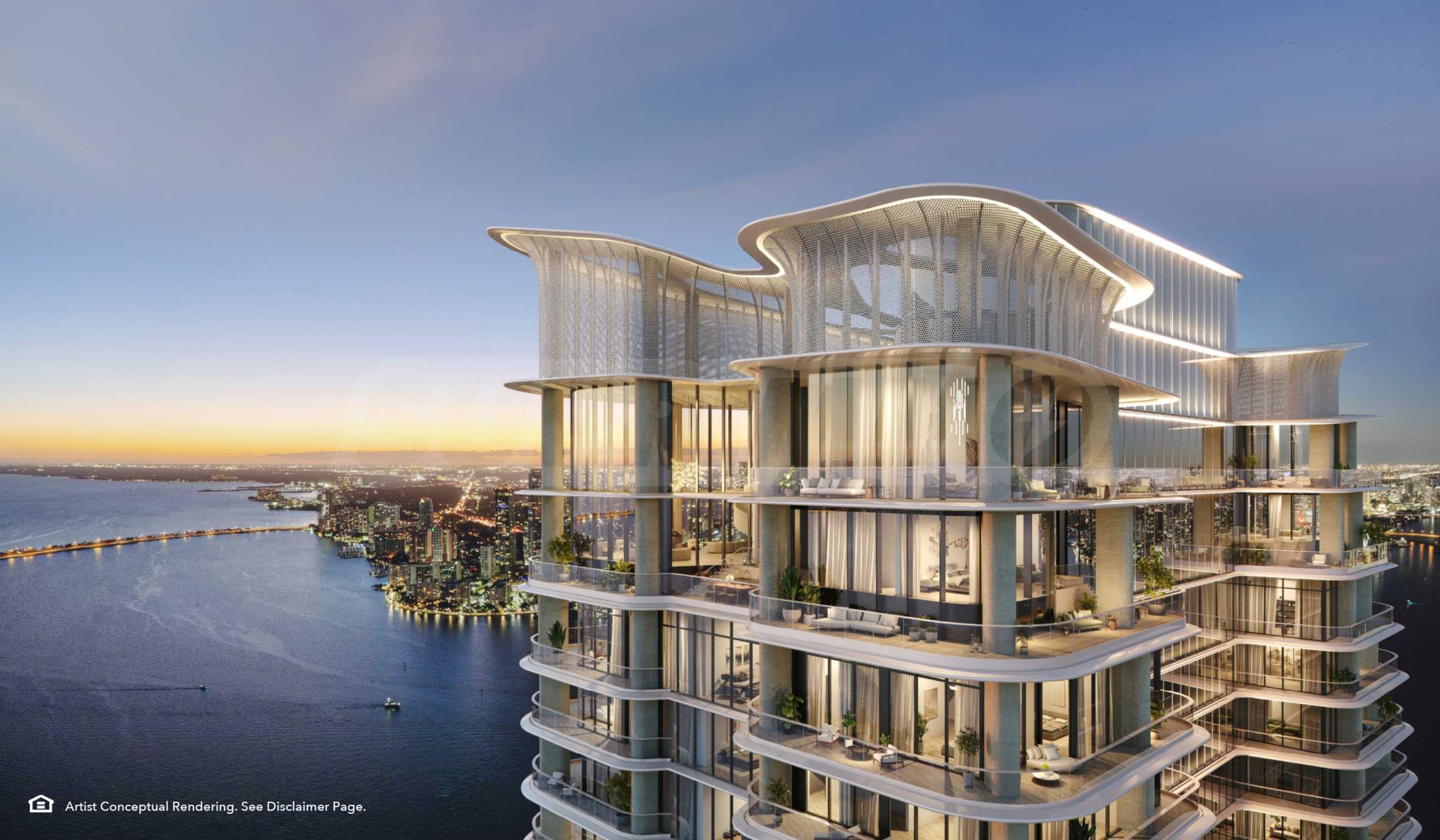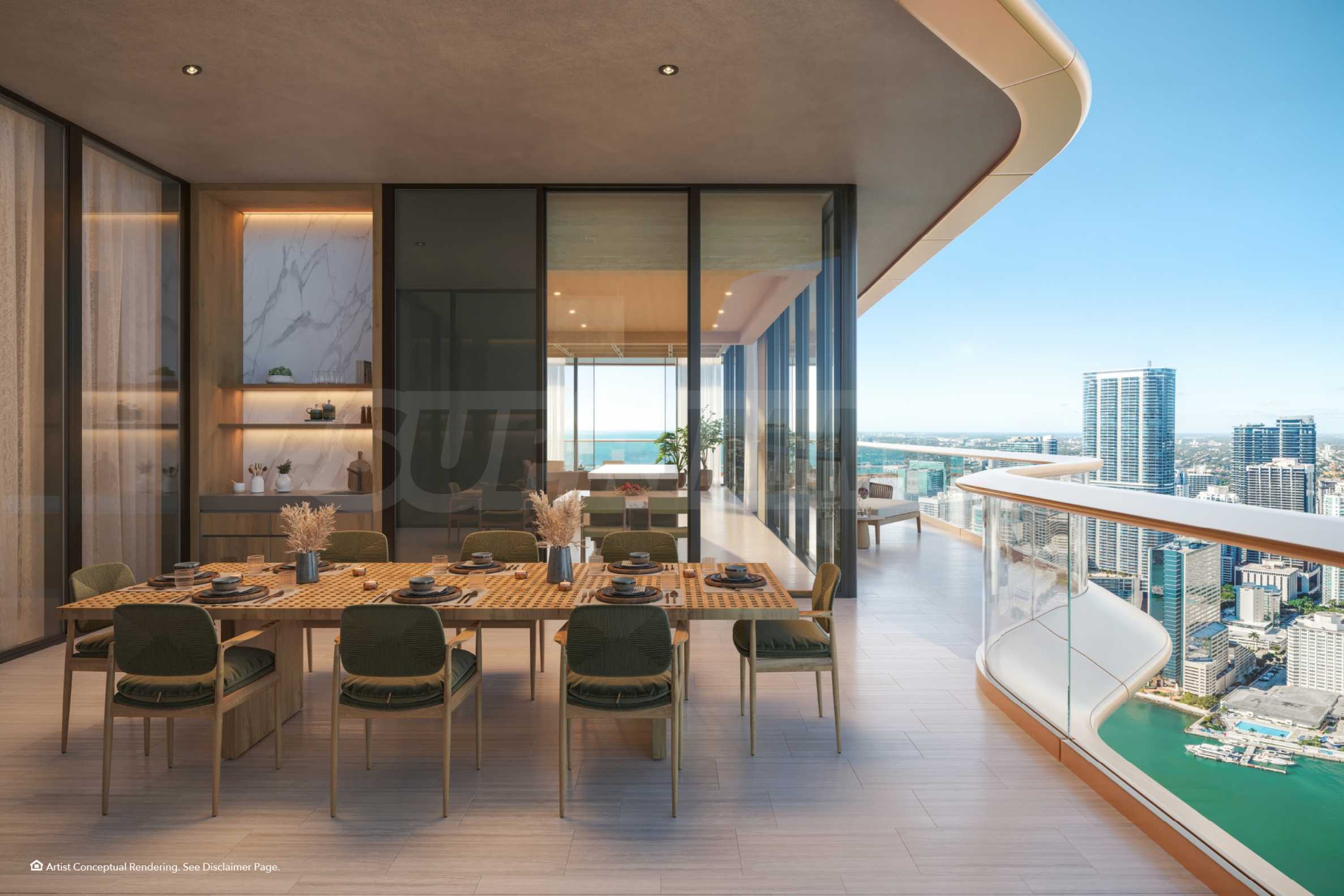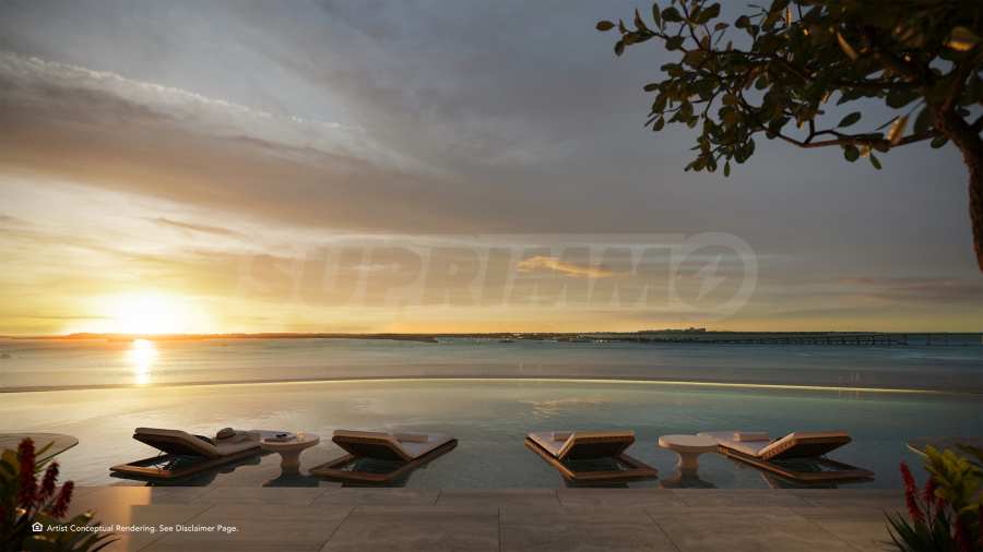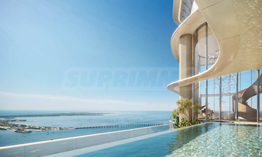 • Высотные резиденции с окнами на три стороны света, расположенные на половине этажа, с собственным лифтом и фойе, пятью спальнями с собственными гардеробными, просторной гостиной с окнами на три стороны света, а также второй, неформальной семейной комнатой; помещениями для персонала, прачечной и кладовой, сауной в главной ванной комнате, двумя угловыми террасами с зонами отдыха, баром на открытом воздухе, обеденной зоной и открытым бассейном для отдыха.*