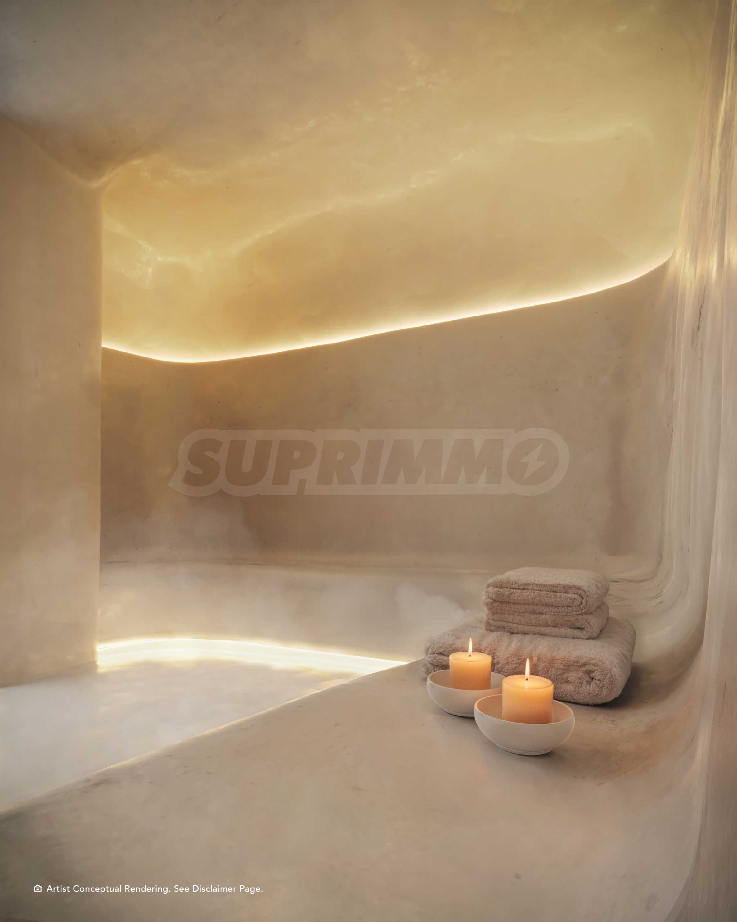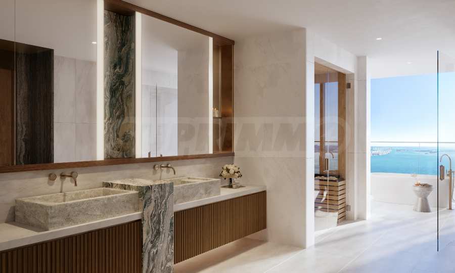 Изготовленная по индивидуальному заказу меблировку отличается зеркалами с подсветкой и продуманно интегрированными решениями для хранения. В каждой главной ванной комнате есть отдельная туалетная комната для полного спокойствия, а в некоторых резиденциях предусмотрена возможность установки инфракрасной сауны — изысканный завершающий штрих к этому идеальному пространству.
