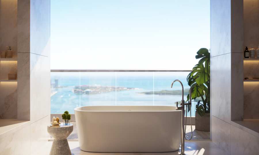 Чтобы усилить чувство исключительности, у жильцов есть не только частные лифты, но и собственные лобби — привилегия, достойная самых взыскательных. Входная дверь двойная, от пола до потолка, и оснащена системой бесключевого доступа — тонкое, но определенное выражение современной роскоши. Как только вы переступите порог, вас встретят пол из натурального камня, потолки высотой более трех метров и окна от пола до потолка, из которых открывается неописуемый вид на океан.