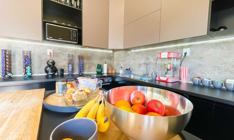 • Полностью оборудованная кухня с кофе, чаем и очищенной минерализованной водой;