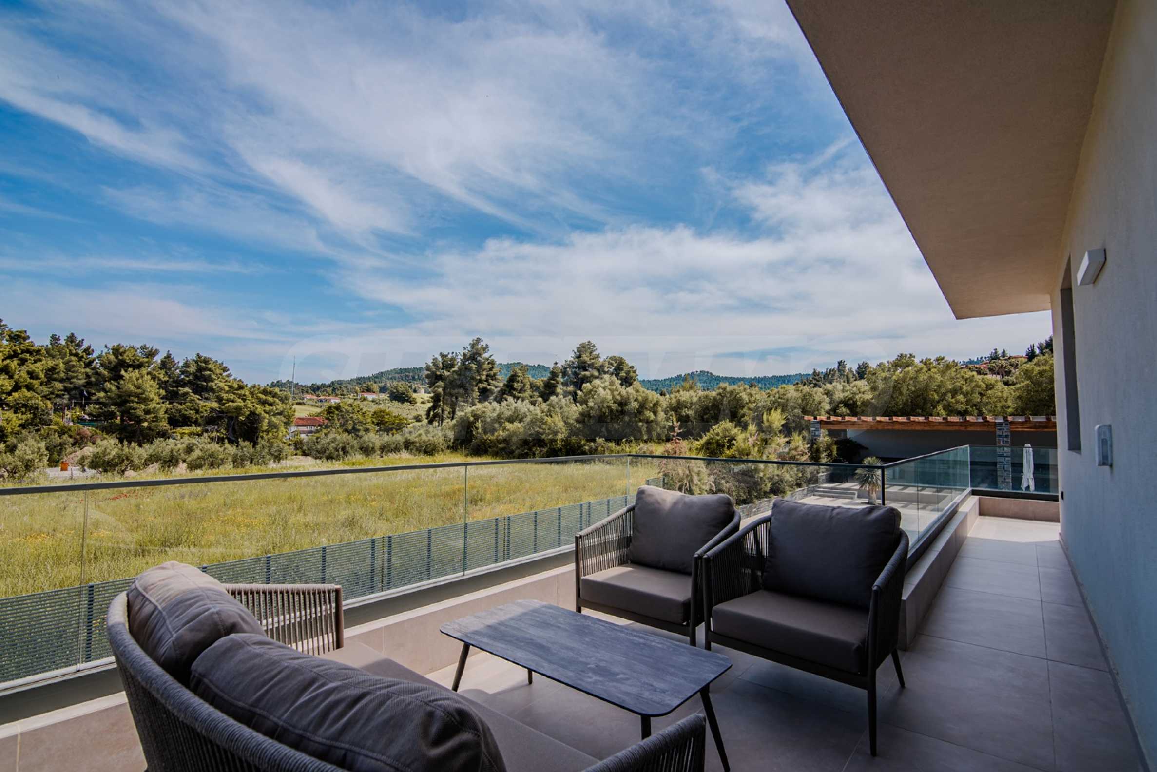 Расположение более чем идеальное: всего в 600 метрах от лазурного моря, в 2400 метрах от ближайшей живописной деревни Пефкохори, в 98 км от аэропорта Македония-Салоники и примерно в 120 км от города Салоники, что обеспечивает идеальный баланс между спокойствием природы и удобствами городской жизни.