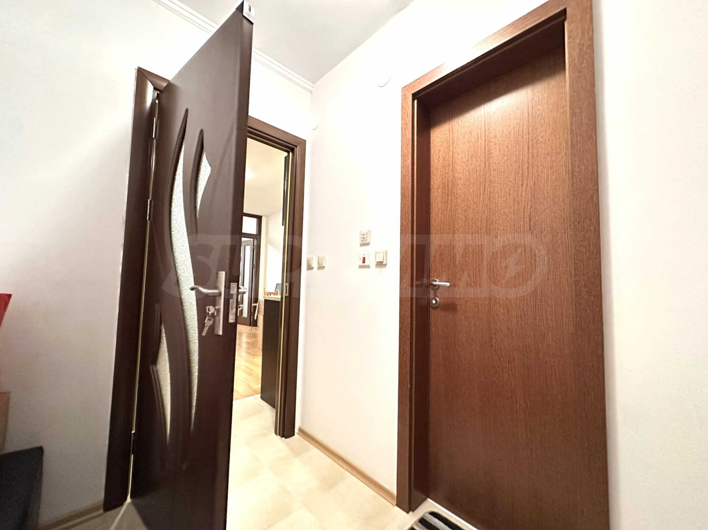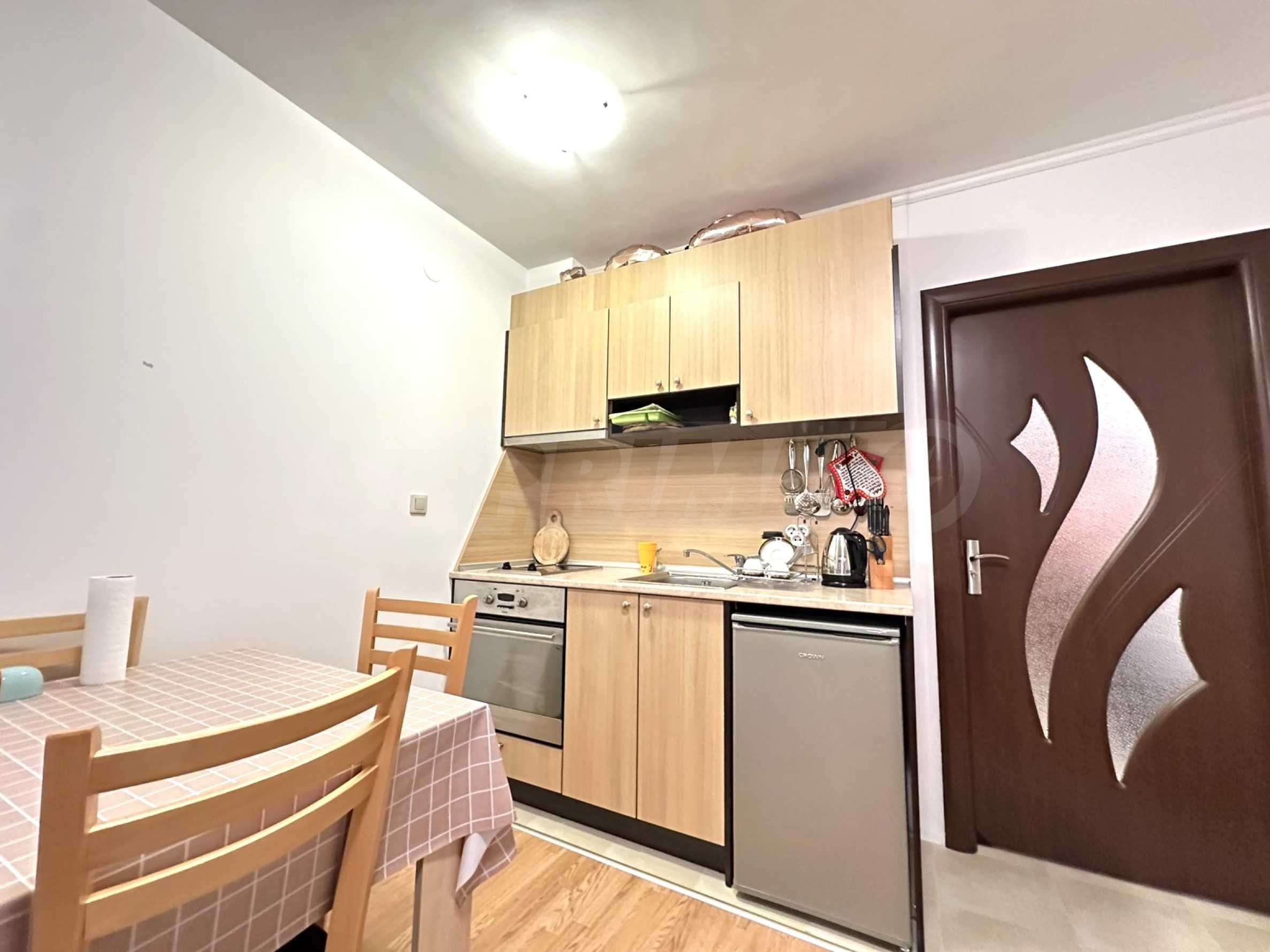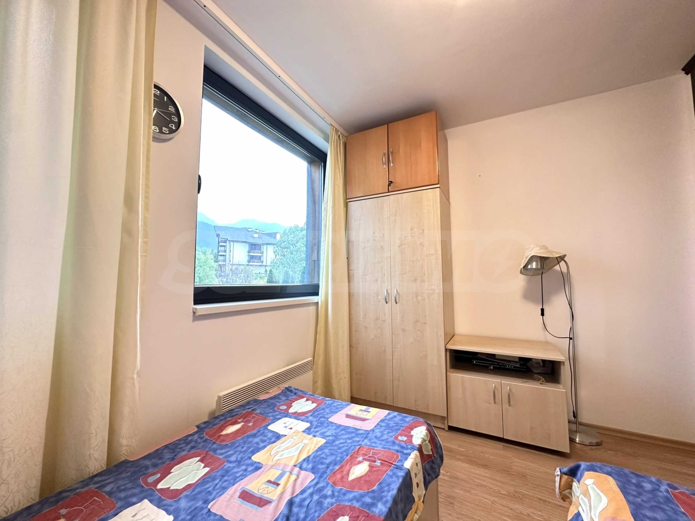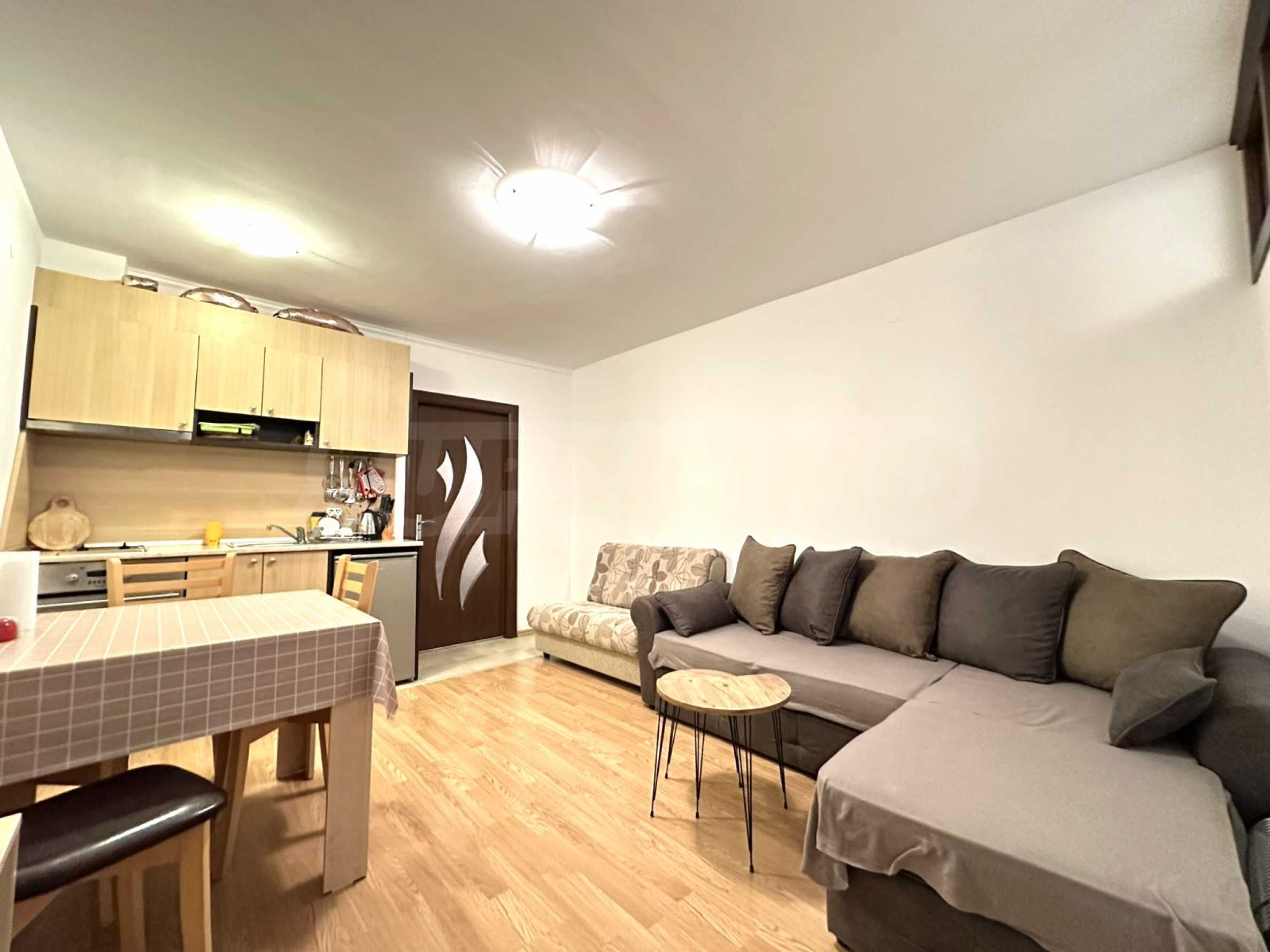 Представляем на продажу полностью меблированную двухкомнатную квартиру в закрытом комплексе Aspen Heights, расположенном у подножия горы Пирин, недалеко от поля для гольфа Pirin Golf & Country Club и всего в 10 минутах езды от горнолыжного курорта Банско.