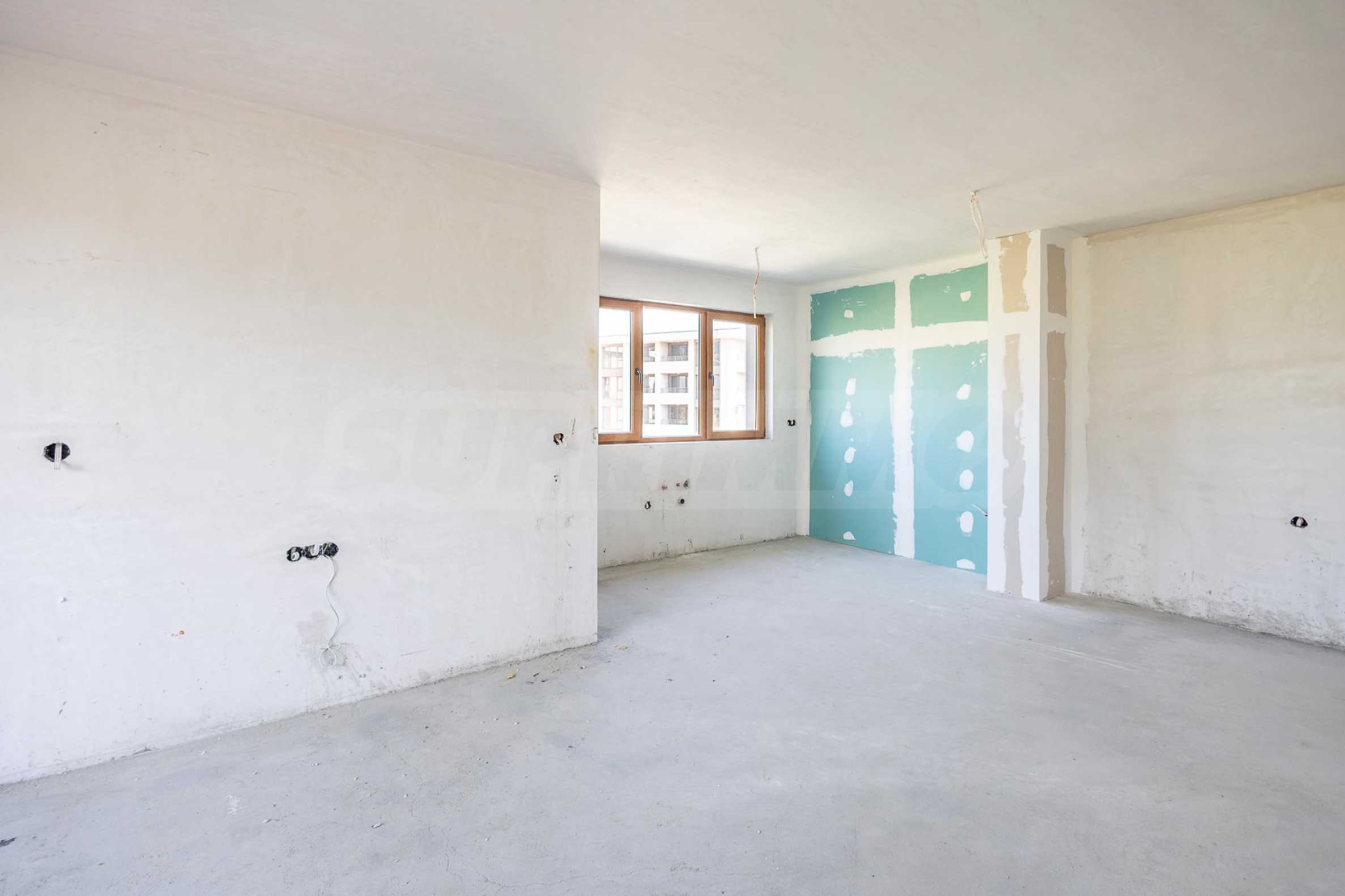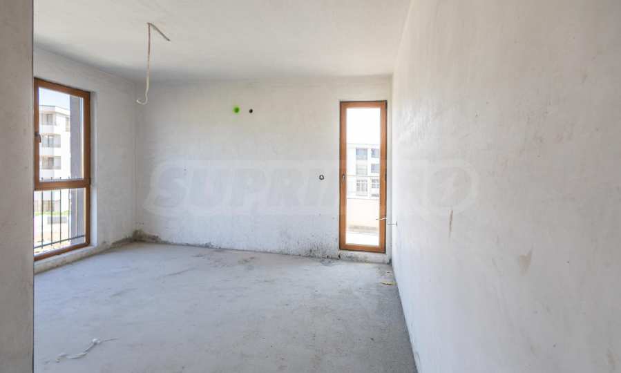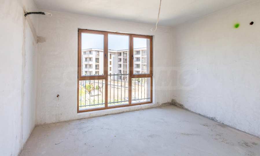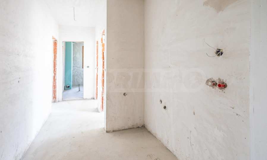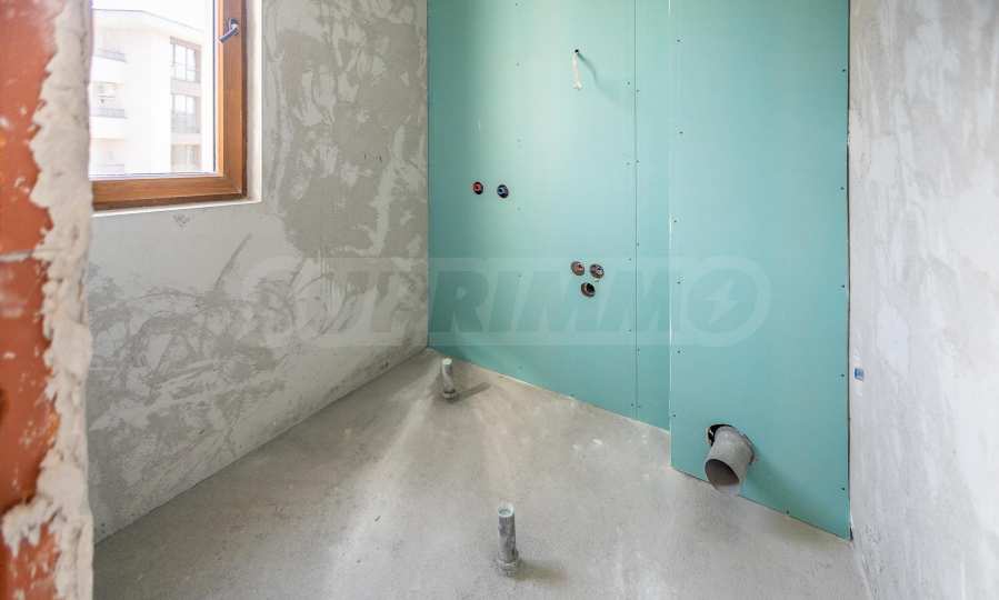 Квартира расположена на 3 этаже из 5 и имеет общую площадь 130,54 м2. Предлагается «по болгарским стандартам» — со штукатуркой и стяжкой. Отопление электрическое.