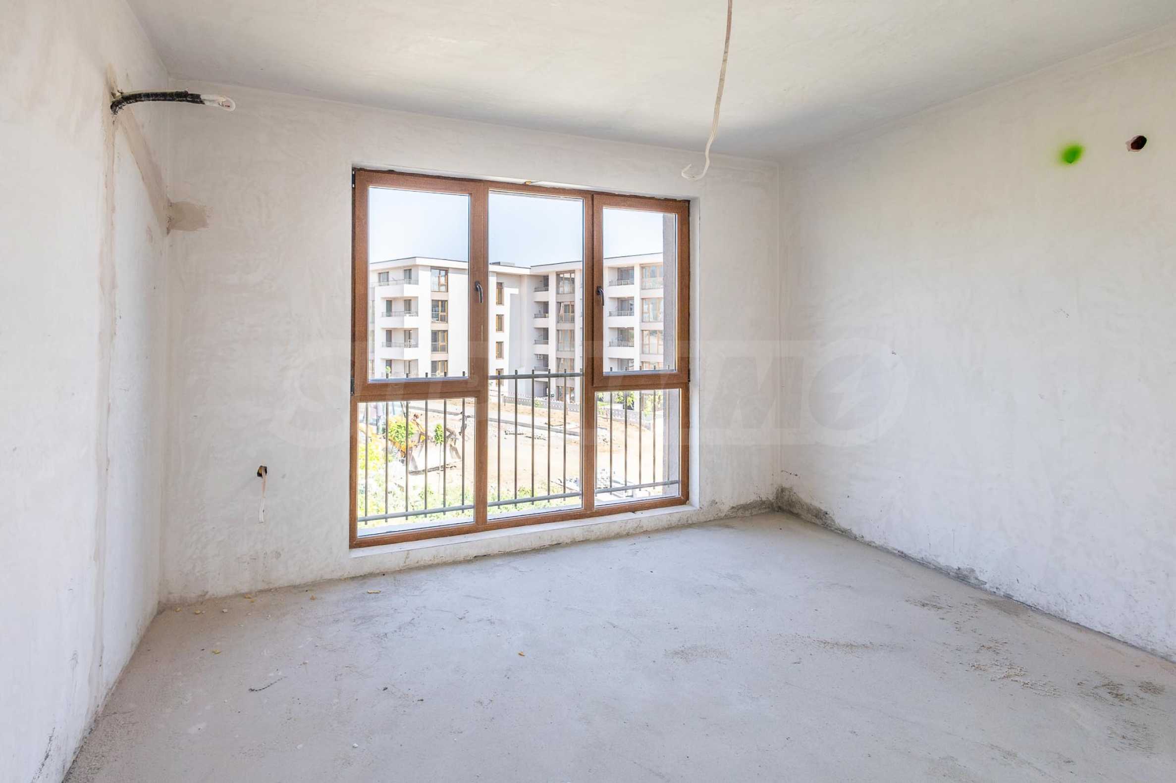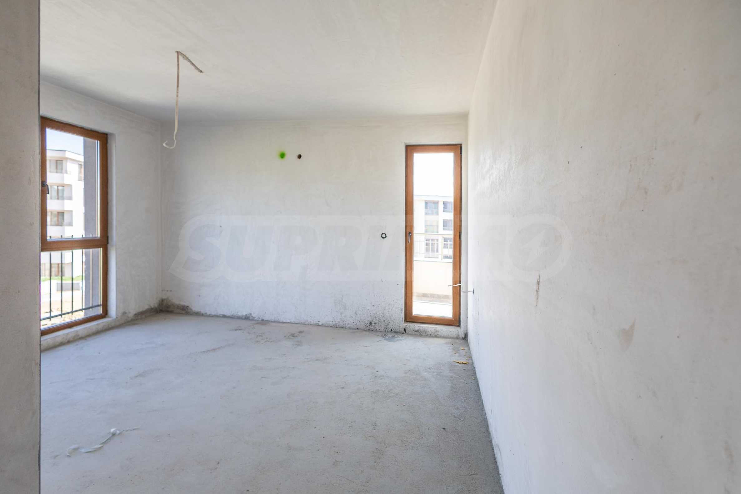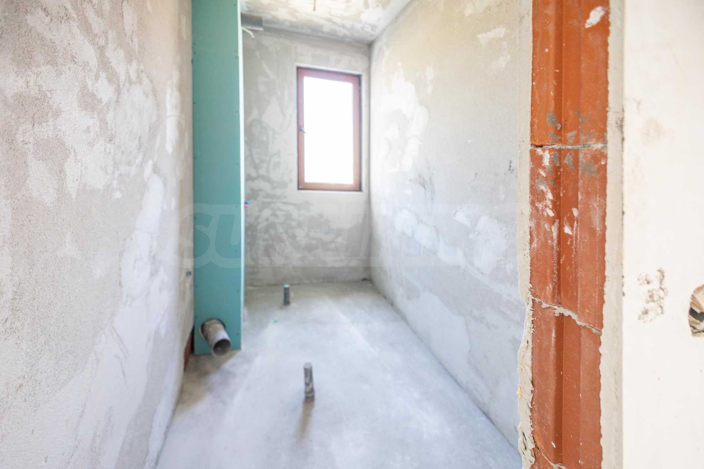 Квартира расположена на 3 этаже из 5 и имеет общую площадь 130,54 м2. Предлагается «по болгарским стандартам» — со штукатуркой и стяжкой. Отопление электрическое.