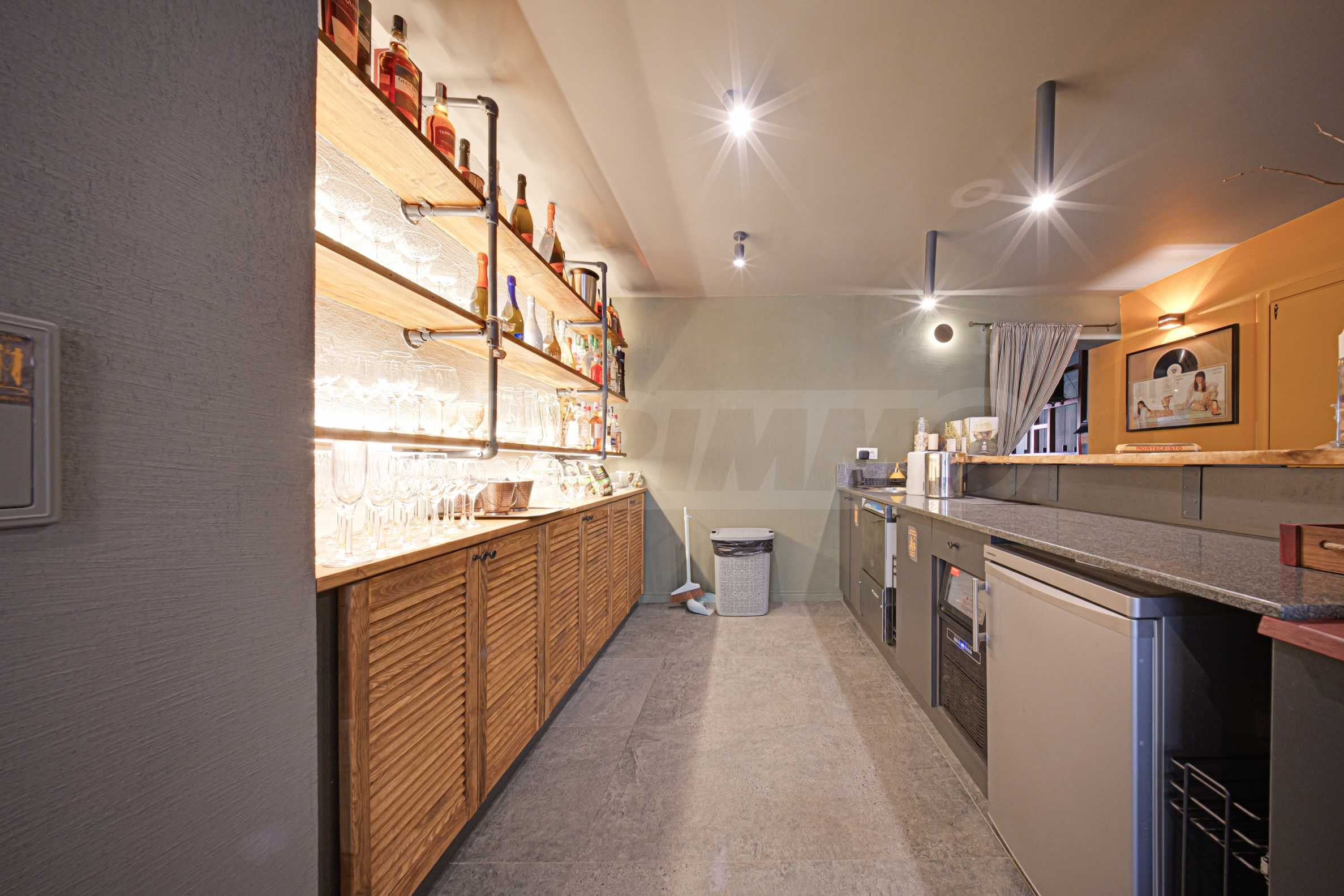 • отдельная барная зона, оборудованная всем необходимым – льдогенератором, холодильником, шкафами и столешницей,